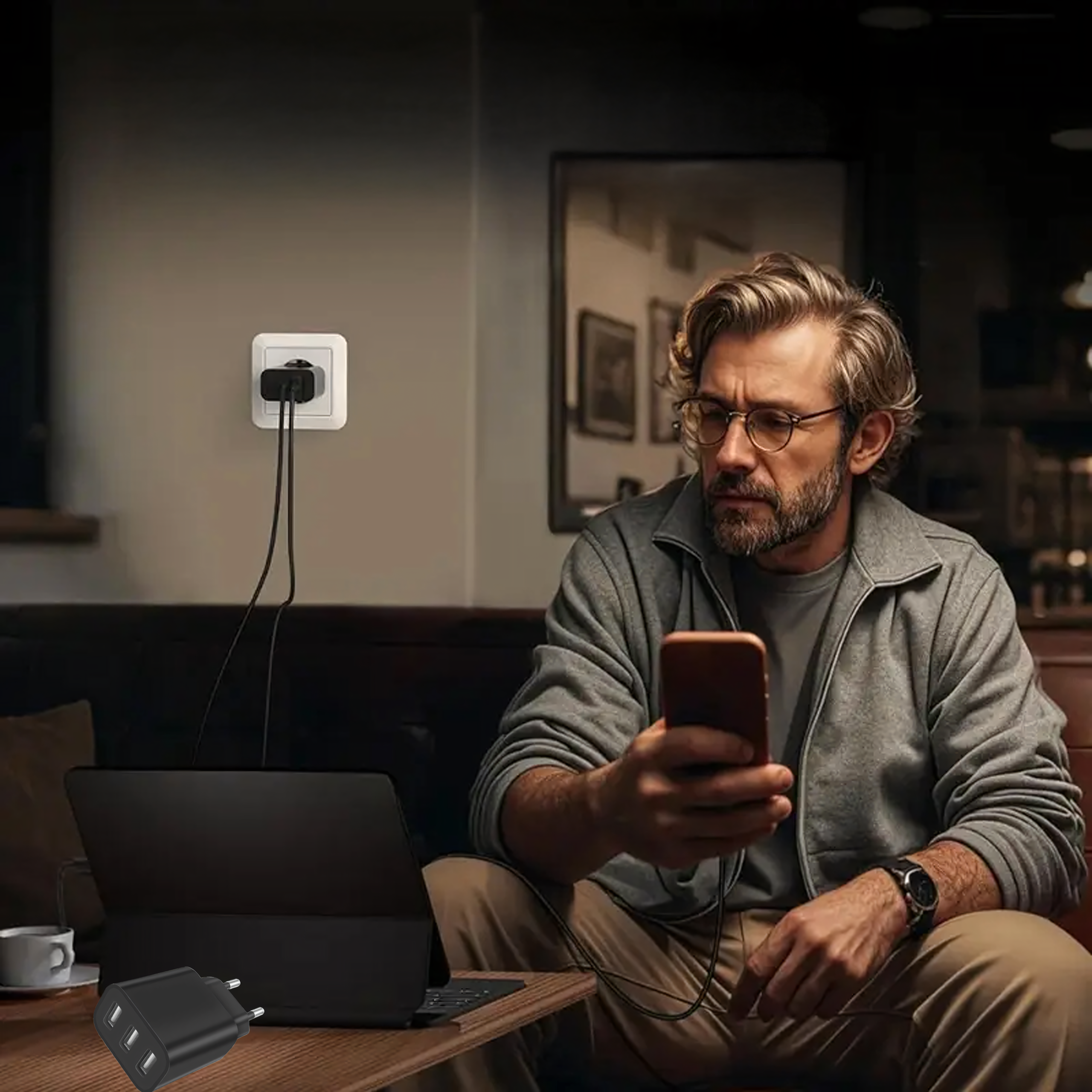 Mocna ładowarka sieciowa 3×USB 5V/3.4A – kompaktowa kostka umożliwia szybkie i bezpieczne ładowanie aż 3 urządzeń jednocześnie. Zabezpieczenia przeciwprzepięciowe i kompaktowy rozmiar czynią ją idealnym wyborem do domu i podróży.