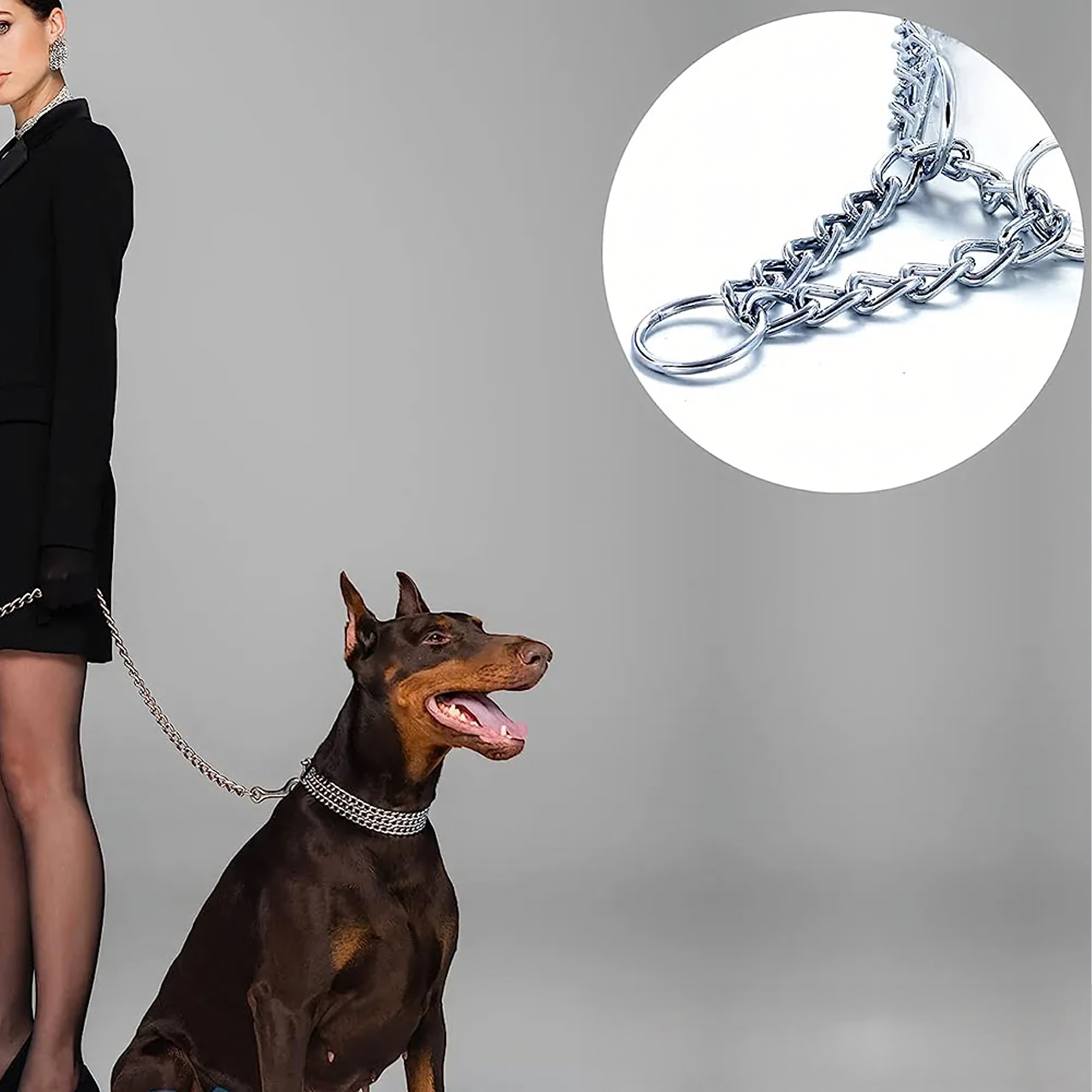 Elegancka i wytrzymała obroża z chromowanej stali, potrójny splot, zapewnia pełną kontrolę nad psem. Idealna do nauki chodzenia przy nodze i codziennych spacerów.