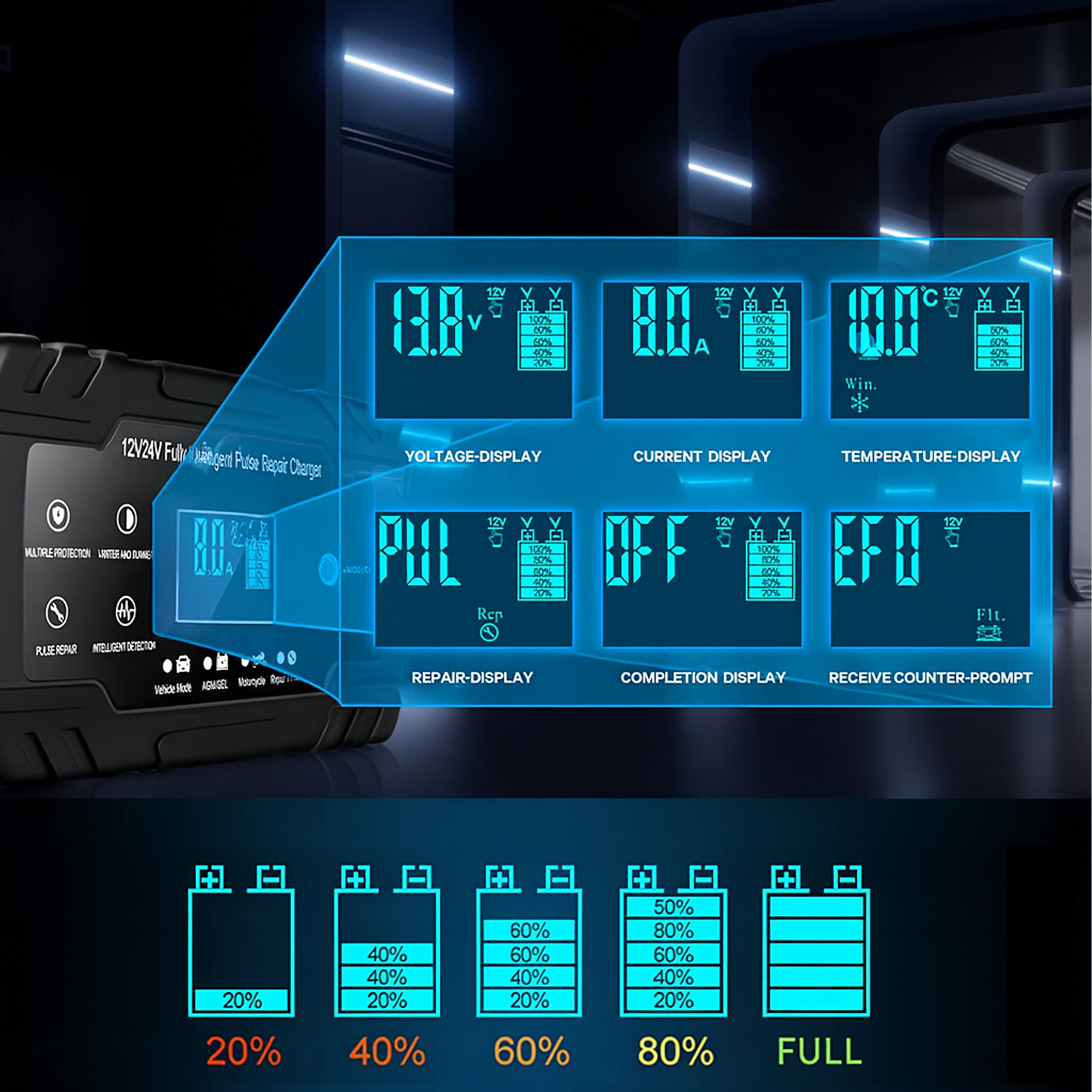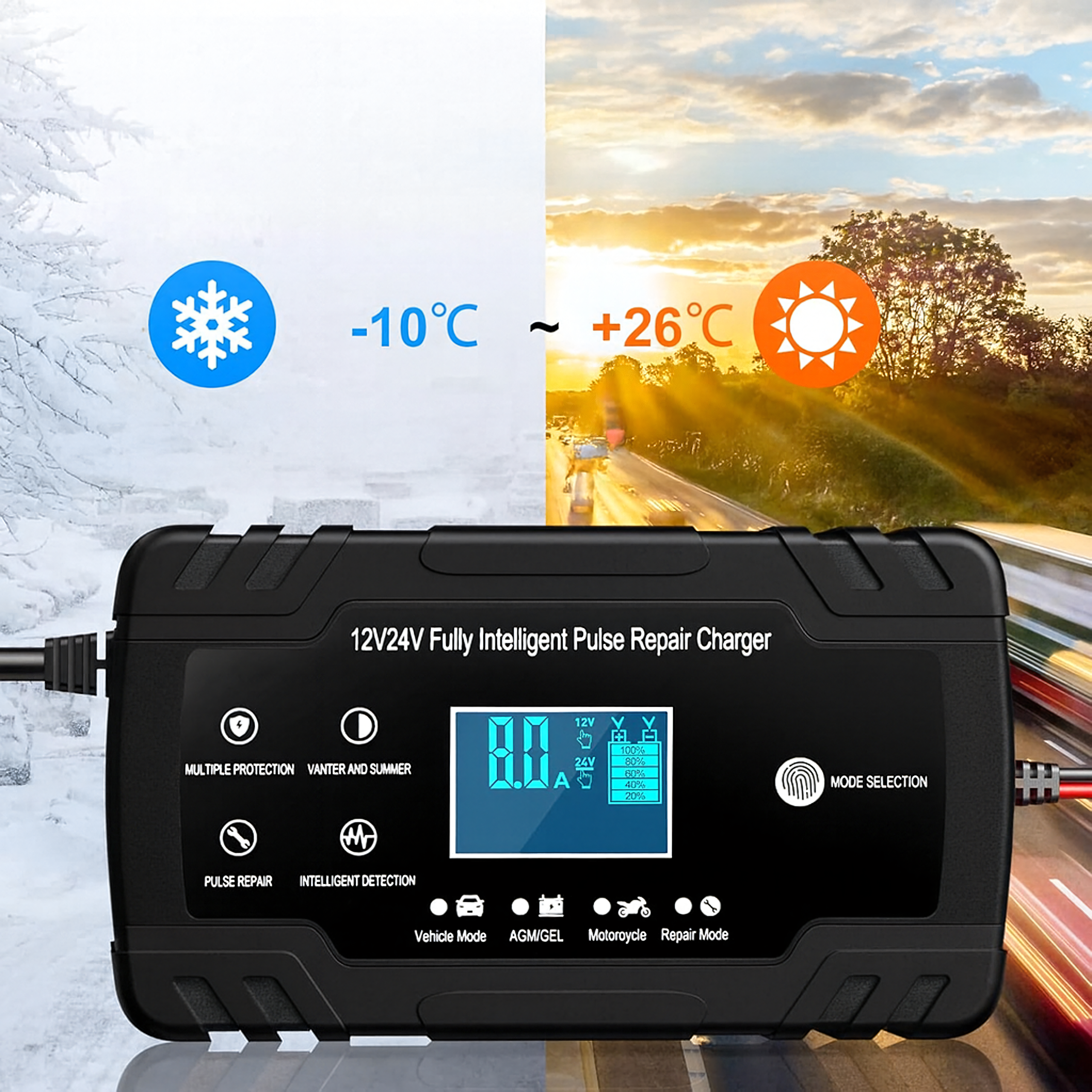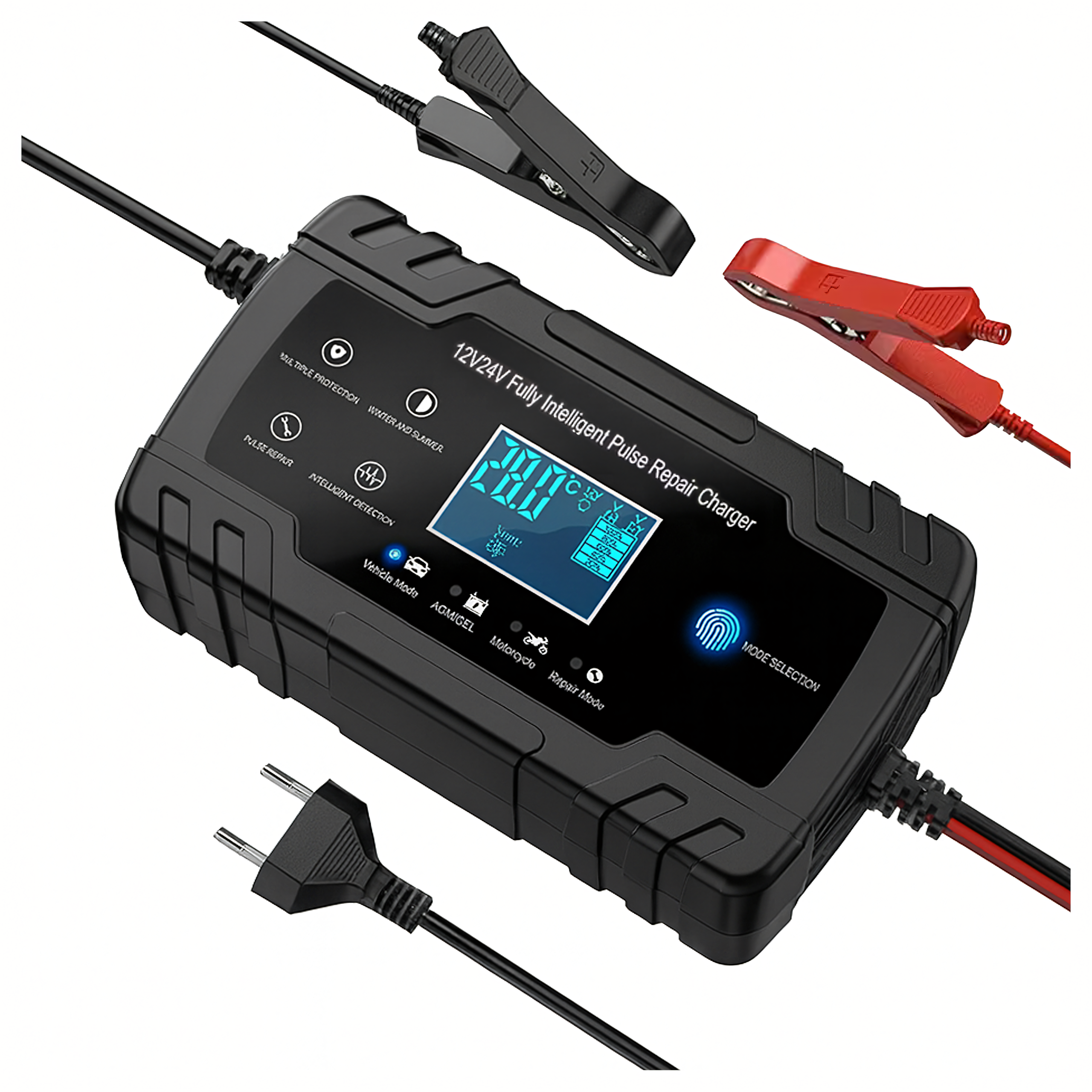 Nowoczesna ładowarka mikroprocesorowa do akumulatorów, która sprawdzi się zarówno w profesjonalnym warsztacie, jak i w garażu domowym. Dzięki automatycznym trybom pracy i inteligentnym zabezpieczeniom zapewnia szybkie, bezpieczne i efektywne ładowanie akumulatorów samochodowych, motocyklowych, żelowych, AGM i wielu innych.