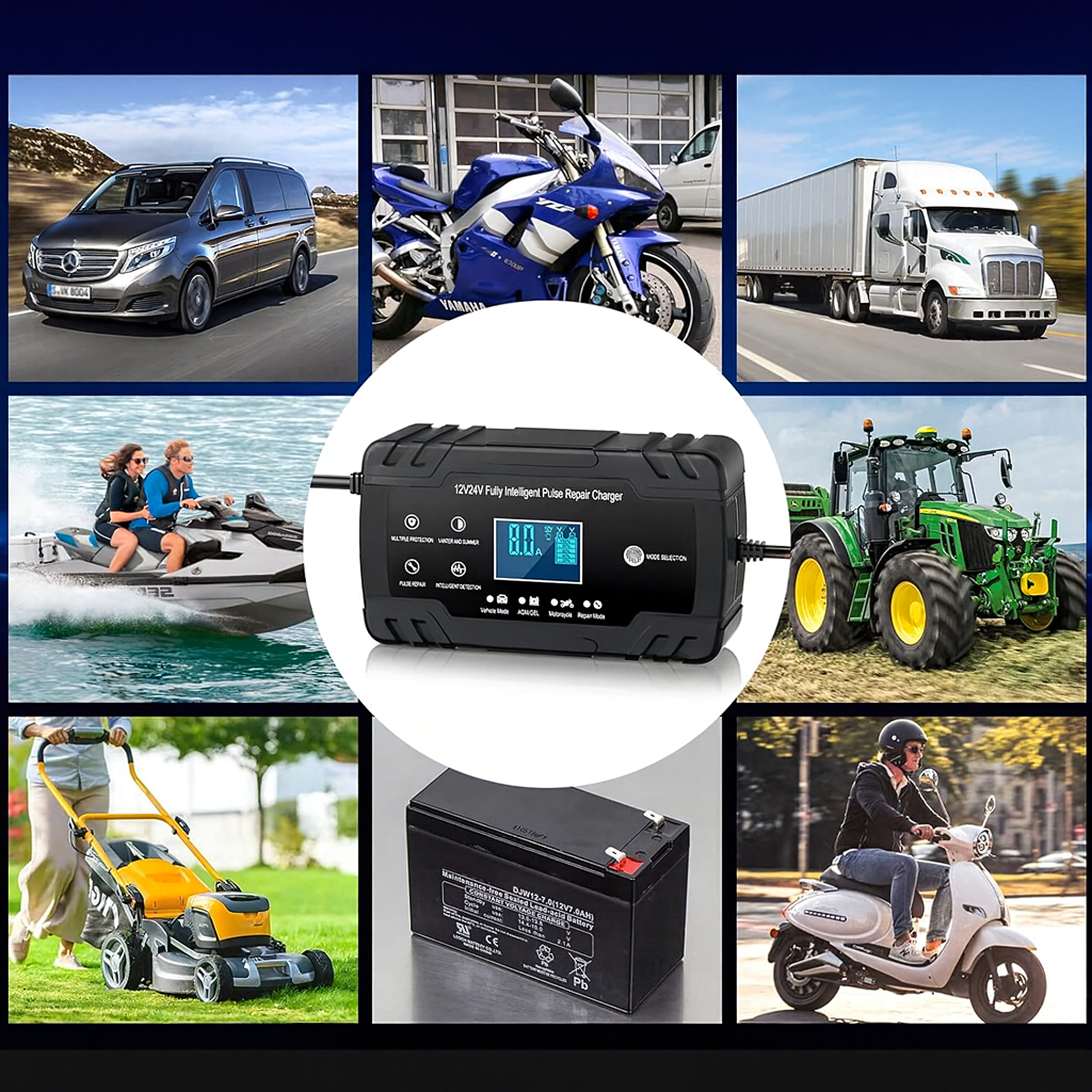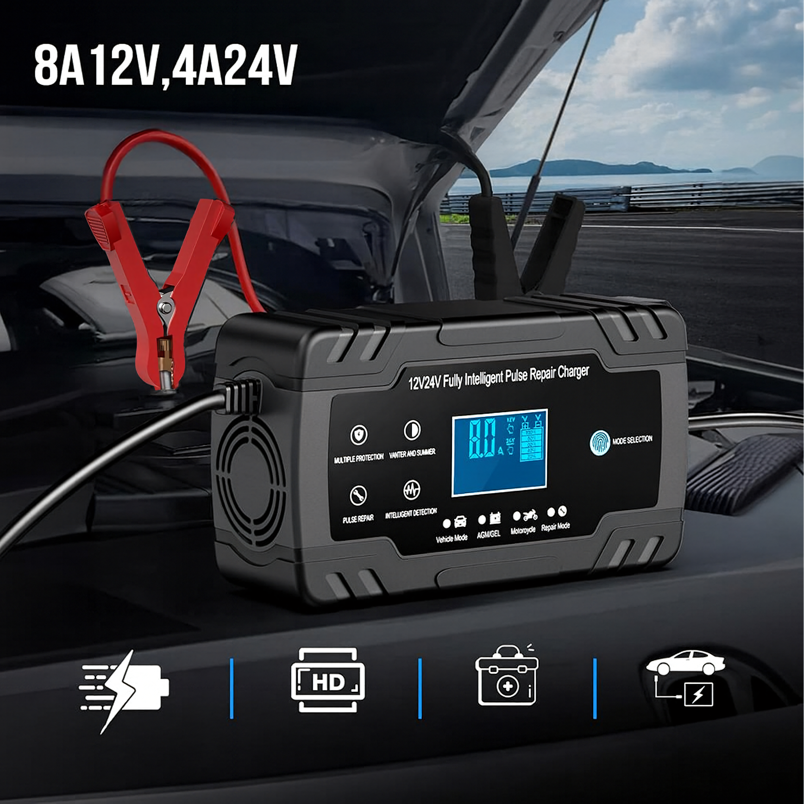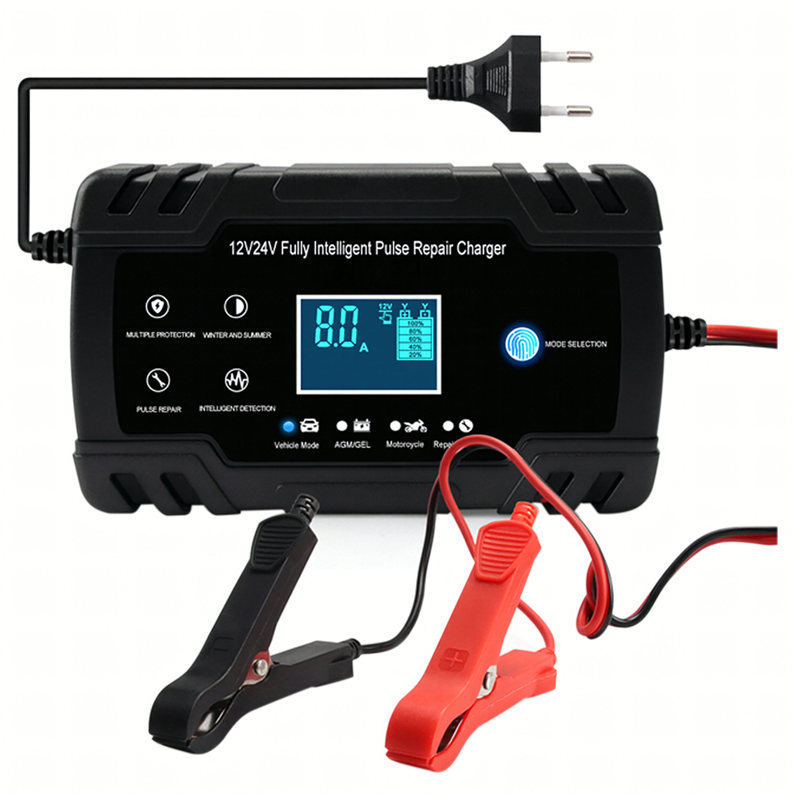 Mocny Inteligentny Prostownik Ładowarka do Akumulatorów 12V 24V 4A 8A Klemy