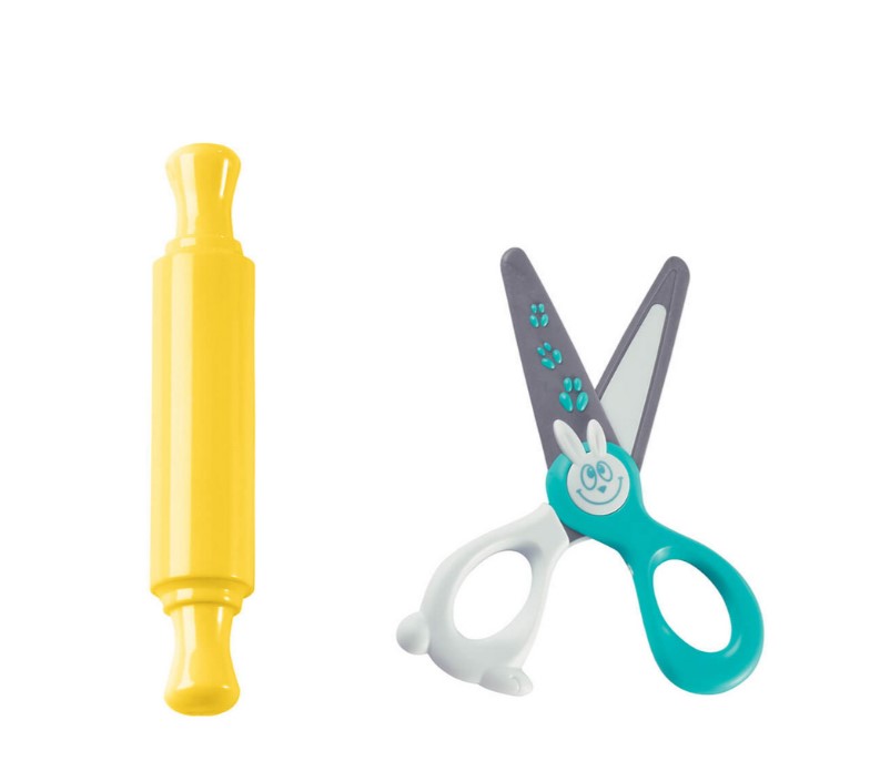 – zabawkowy nożyk, wałek i bezpieczne dla dzieci nożyczki. Poza tym w walizce