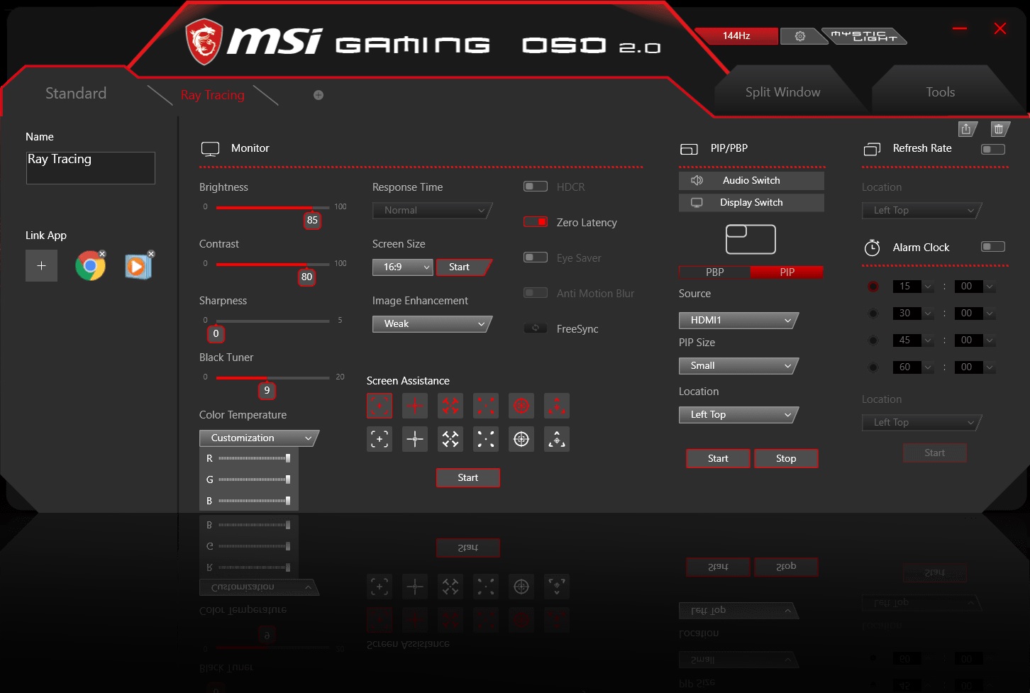 Dostosuj ustawienia swojego monitora korzystając z łatwego w obsłudze oprogramowania Windows Gaming OSD lub aplikacji MSI Remote Display na Androida. Dostrój ustawienia do różnych profili lub ulubionych gier i zmieniaj je „w locie” bez konieczności zaglądania do analogowego, wbudowanego menu OSD monitora. Sprawdź różne tryby i znajdź najbardziej odpowiednie ustawienia dla każde gry.