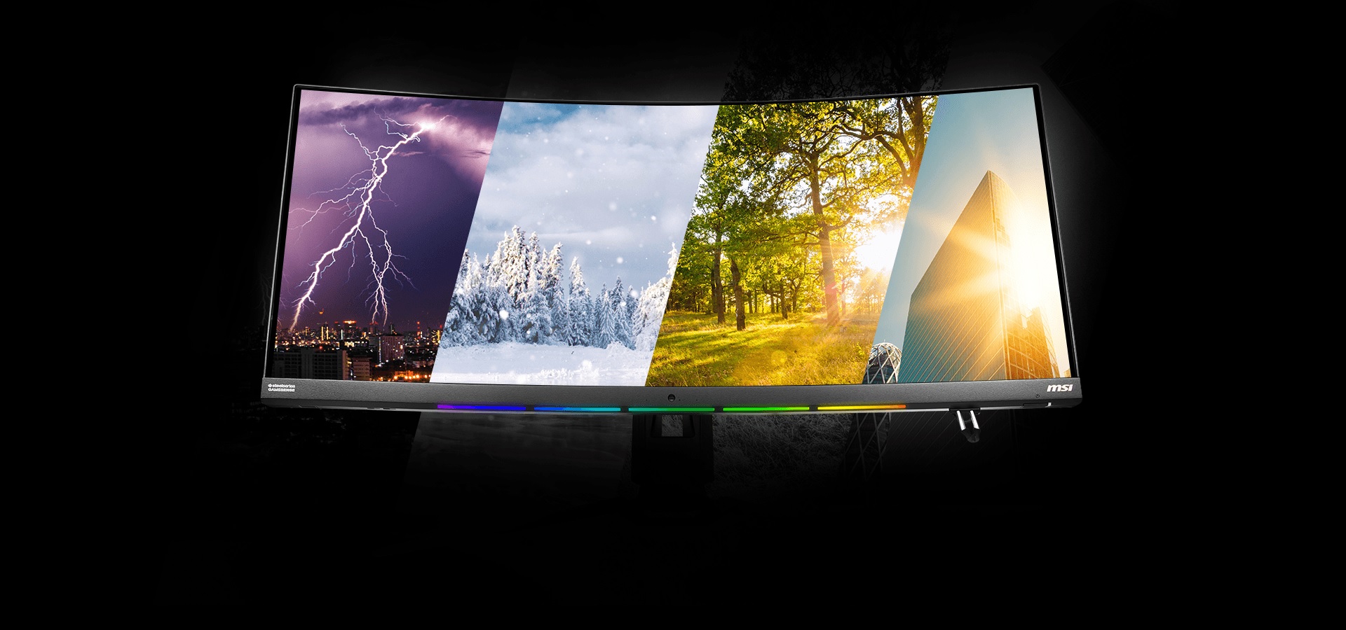 Zastanawiasz się, jaka będzie pogoda? MSI Optix MPG341CQRV z diodami LED Smart RGB można skonfigurować tak, aby wyświetlał informacje takie jak prognoza pogody korzystając z kolorowych wizualizacji i animacji realizowanych za pomocą diodowego sytemu podświetlenia .