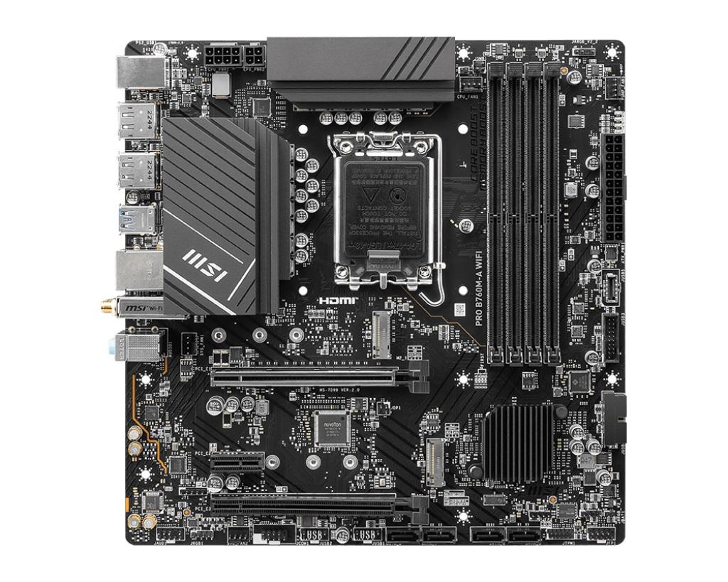 Płyta główna MSI PRO B760M-A WIFI obsługuje procesory Intel® Core™ dwunastej, trzynastej i czternastej generacji oraz pamięci DDR5 o taktowaniu nawet do 6800 MHz. Wbudowany interfejs HDMI obsługuje rozdzielczości do 4K UHD. Wysokiej klasy rozwiązanie sieciowe firmy Intel do profesjonalnego i multimedialnego użytku, zapewnia bezpieczne, stabilne i szybkie połączenie sieciowe. Seria PRO pomaga użytkownikom pracować w znacznie bardziej sprytny sposób, co bezpośrednio przekłada się na wyższą wydajność i produktywność. Dzięki szerokim możliwościom funkcjonalnym i wysokiej jakości montażu, płyty główne z serii PRO charakteryzują się tylko optymalizacją pod kątem profesjonalnych zadań, ale także minimalizują liczbę mogących się pojawić podczas długoletniej eksploatacji problemów i oferując tym samym znacznie dłuższą żywotność.