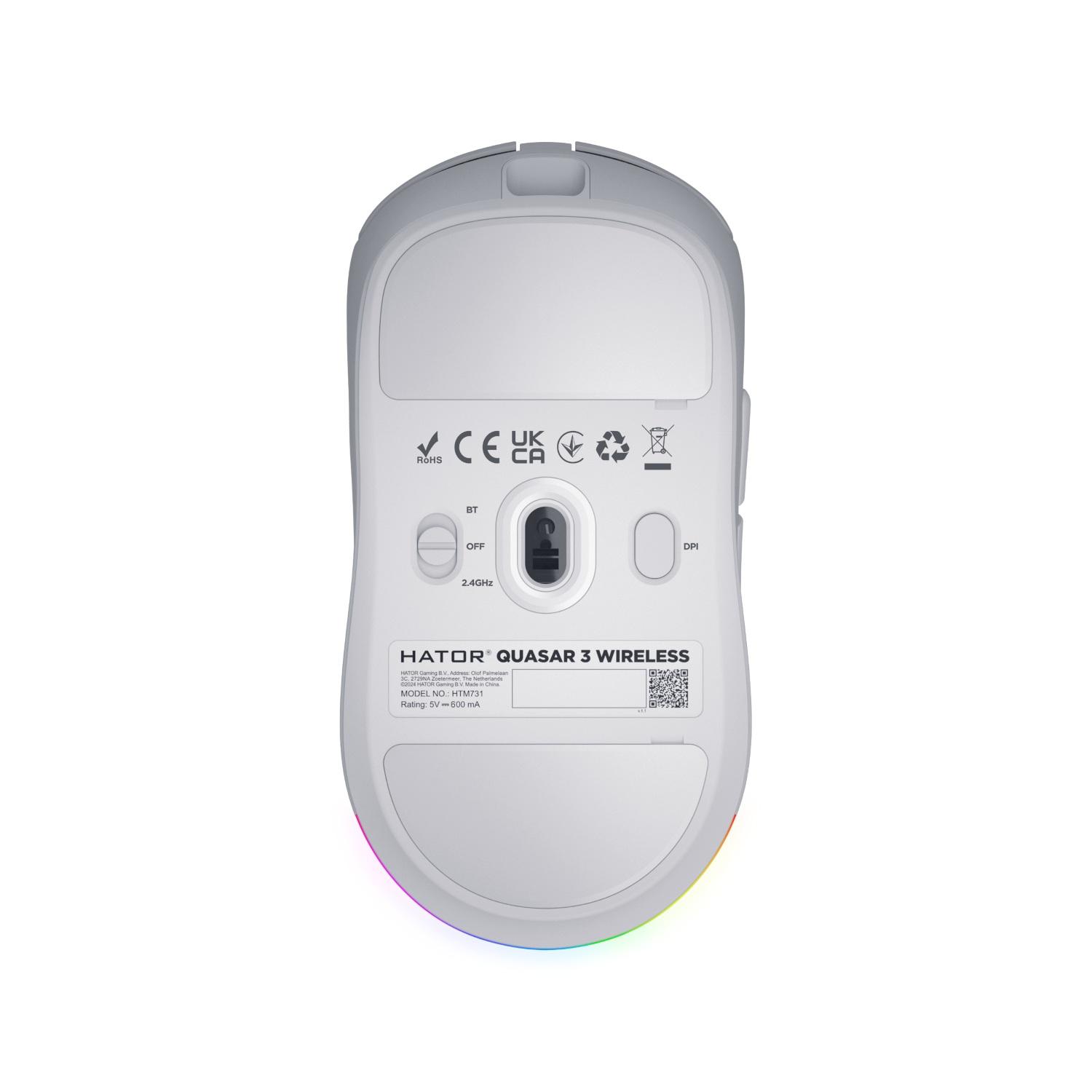 HATOR Quasar 3 Wireless to wszechstronna mysz gamingowa, która łączy w sobie stylowy design z zaawansowanymi technologiami dla graczy wymagających najwyższej precyzji i komfortu. Jej pełnowymiarowa, symetryczna obudowa została zaprojektowana tak, by zapewnić idealne dopasowanie do każdego stylu chwytu, gwarantując wygodę nawet podczas najdłuższych sesji gamingowych. Sercem urządzenia jest precyzyjny czujnik optyczny PixArt, który oferuje stabilną pracę i niezwykłą dokładność, pozwalając osiągać maksymalne wyniki w grach. Przełączniki o żywotności 100 milionów kliknięć z możliwością regulacji zerowego odbicia zapewniają natychmiastową reakcję na każde polecenie, a enkoder TTC Gold gwarantuje niezawodne działanie kółka przewijania nawet w najbardziej wymagających warunkach.