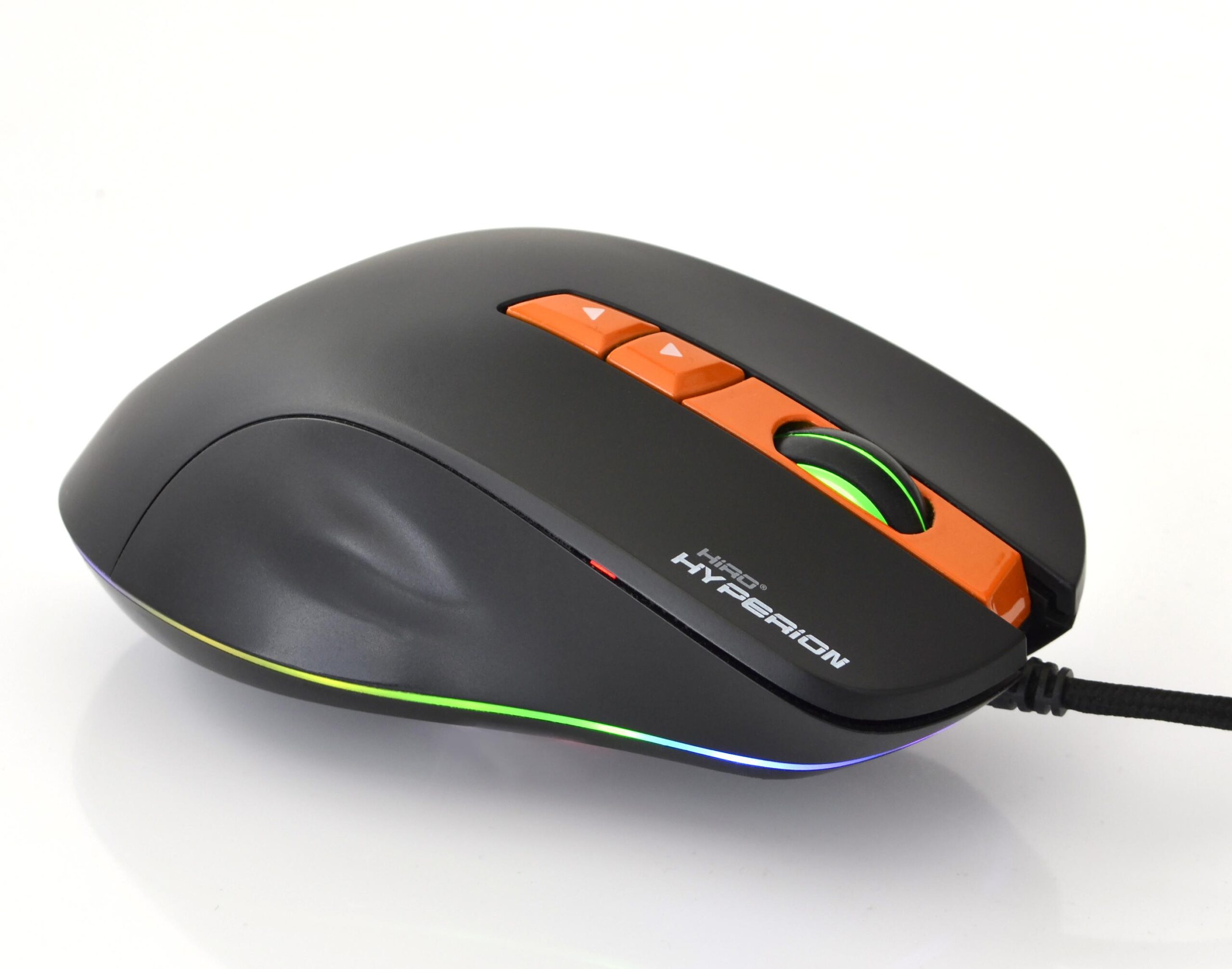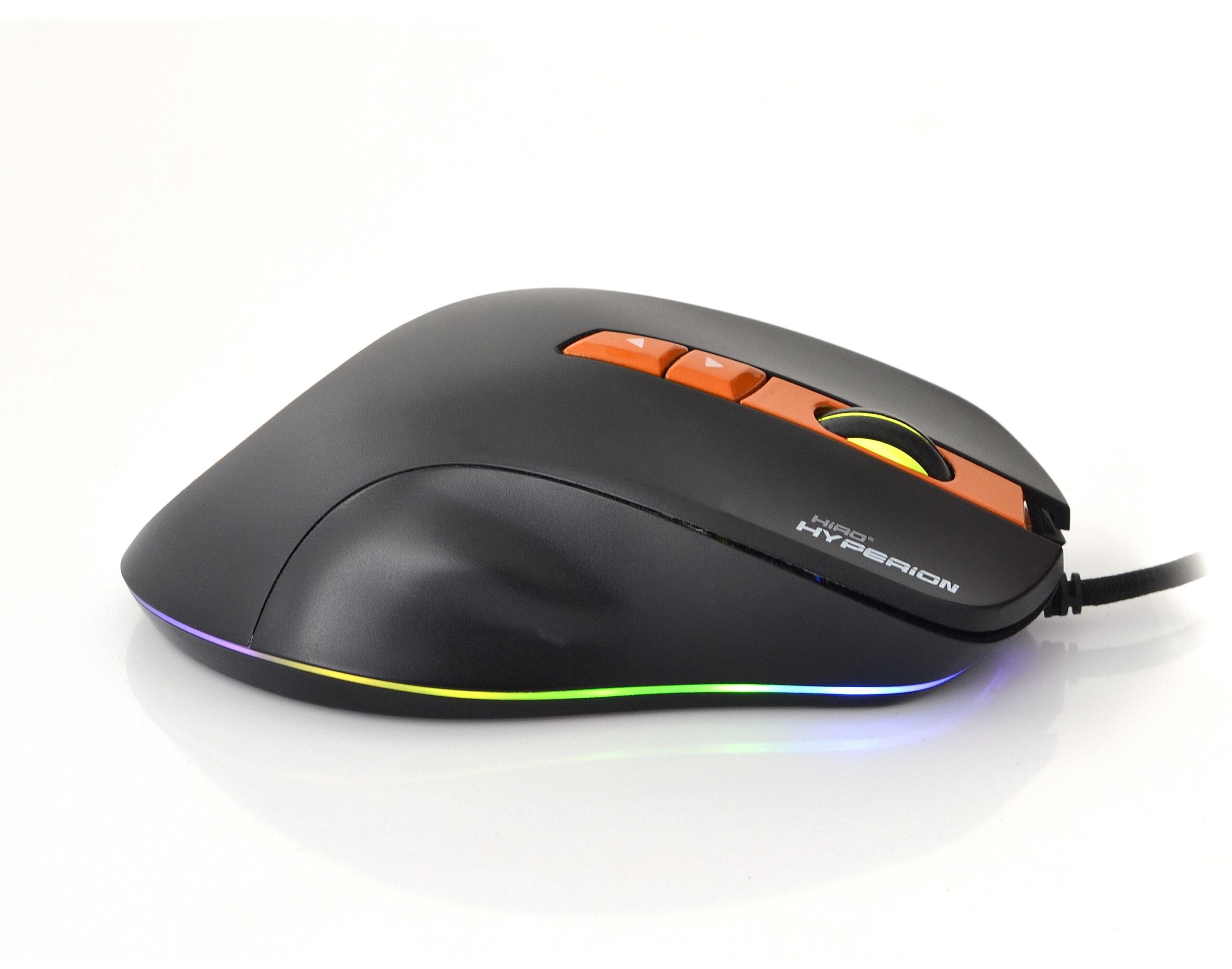 HIRO Hyperion to mysz gamingowa, dedykowana dla graczy praworęcznych ze względu na swój precyzyjny profil. Konstrukcja myszy została opracowana w sposób, który pozwala na jak najlepsze ułożenie dłoni, uzyskując pełną powierzchnię styczną i prawidłowy chwyt. HIRO Hyperion przykuwa wzrok swoją oryginalną stylistyką, której istotnym elementem jest podświetlenie w 16 mln definiowalnych kolorów. Pozwala ono dostosować wygląd myszki do indywidualnych preferencji użytkownika. Ta mysz to również wysokie parametry i jakość wykonania. Sensor AVAGO A3050, pracujący w zakresie rozdzielczości 500-4000 DPI oraz mikroprocesor z częstotliwością raportowania 1000Hz gwarantującym stabilność transmisji danych.