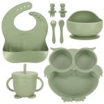 Naczynia silikonowe dla dzieci sowa zestaw 8 elementów beżowe