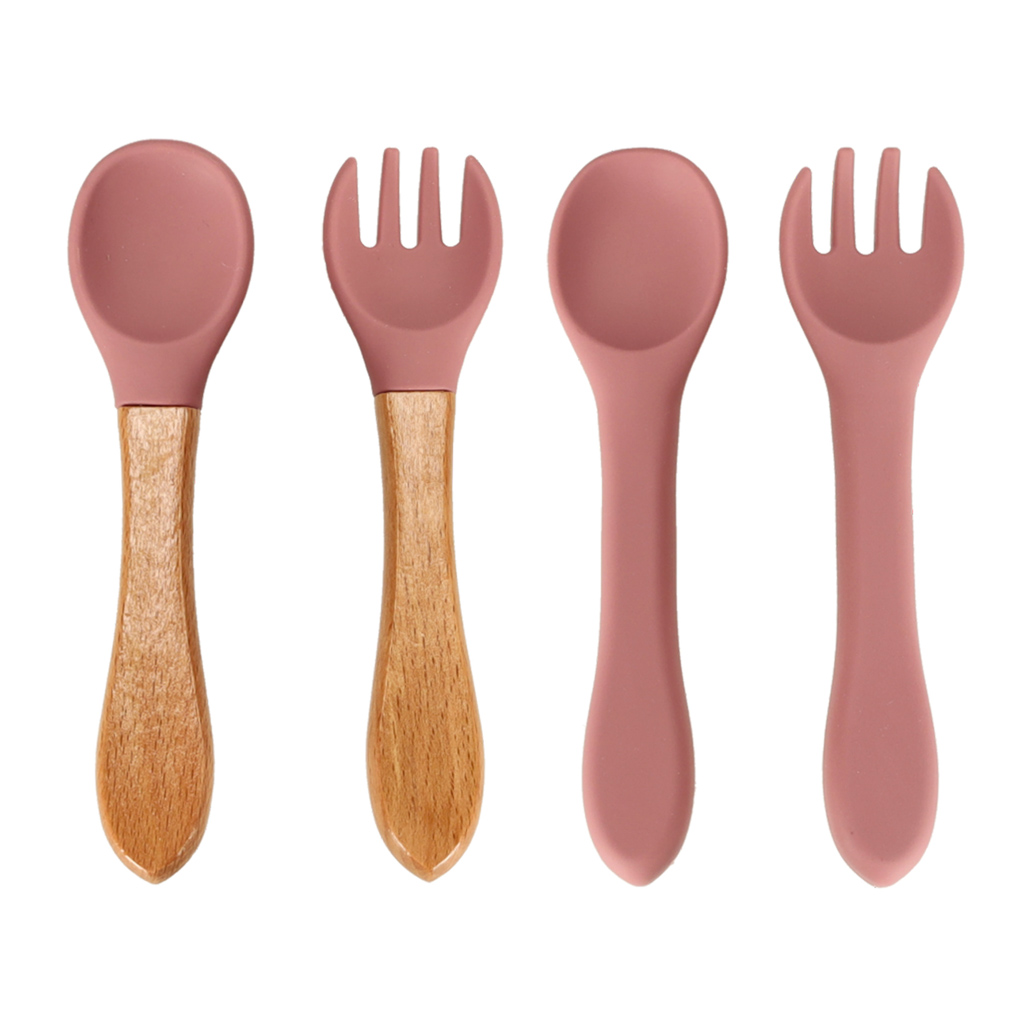 Naczynia silikonowe dla dzieci wiewiórka zestaw 9 elementów ciemny różowy