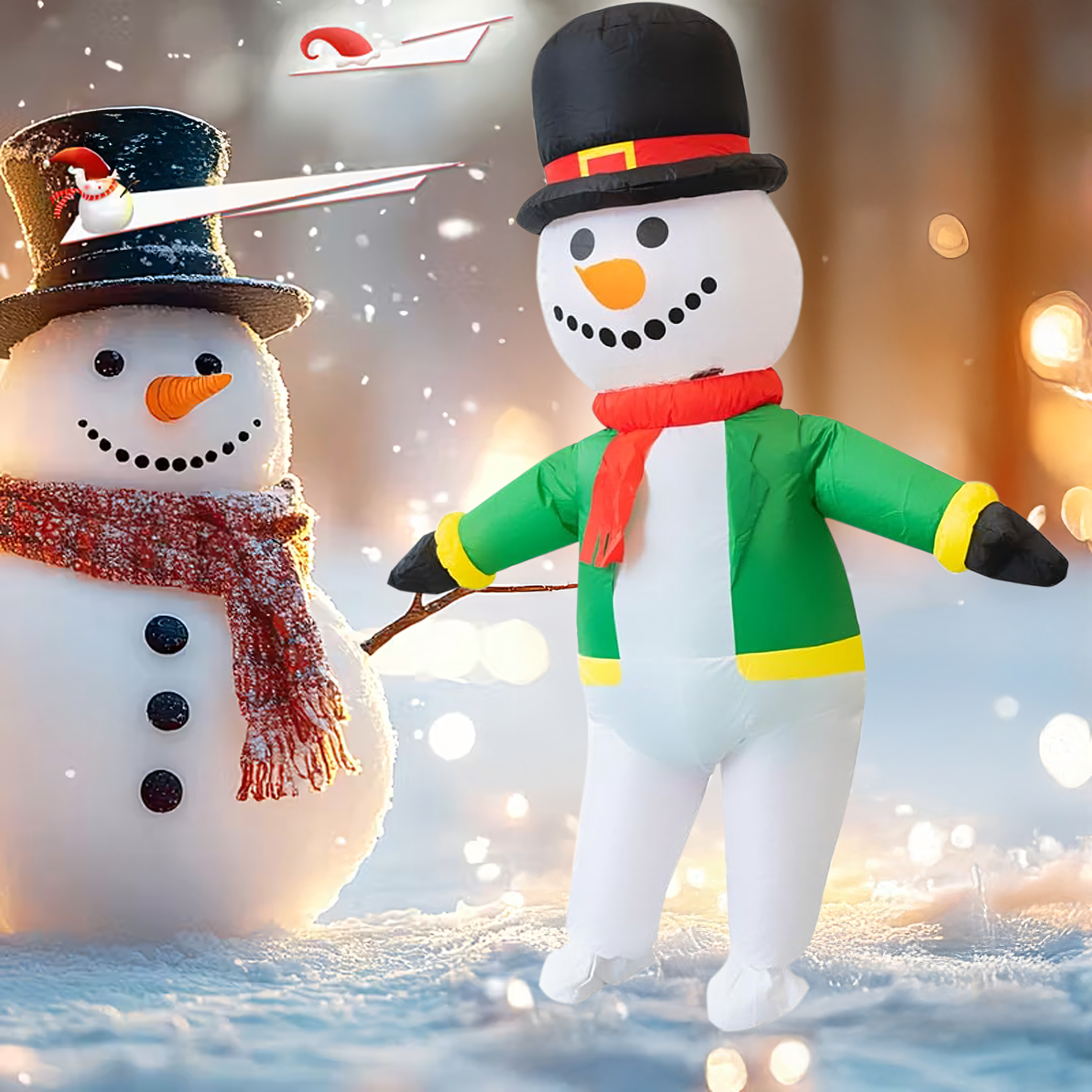 Dmuchany Kostium Bałwanka 150–190 cm – idealna atrakcja na święta, imprezy i eventy! Lekki, wygodny i trwały strój, który szybko napełnia się powietrzem dzięki dołączonej dmuchawie. Pasuje na większość dorosłych, zapewnia niezapomnianą zabawę i świąteczny klimat.