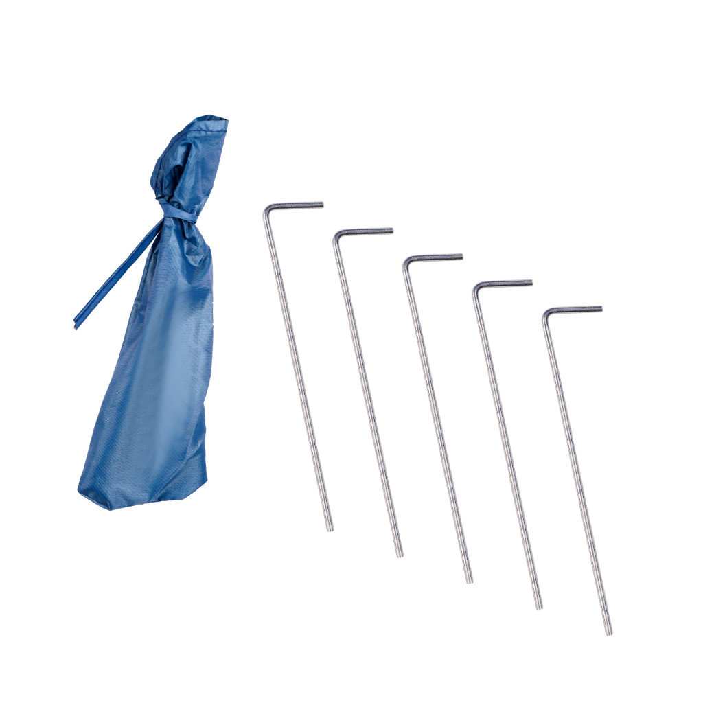 Można łatwo go przymocować do trawy lub piasku dzięki śledziom w zestawie.