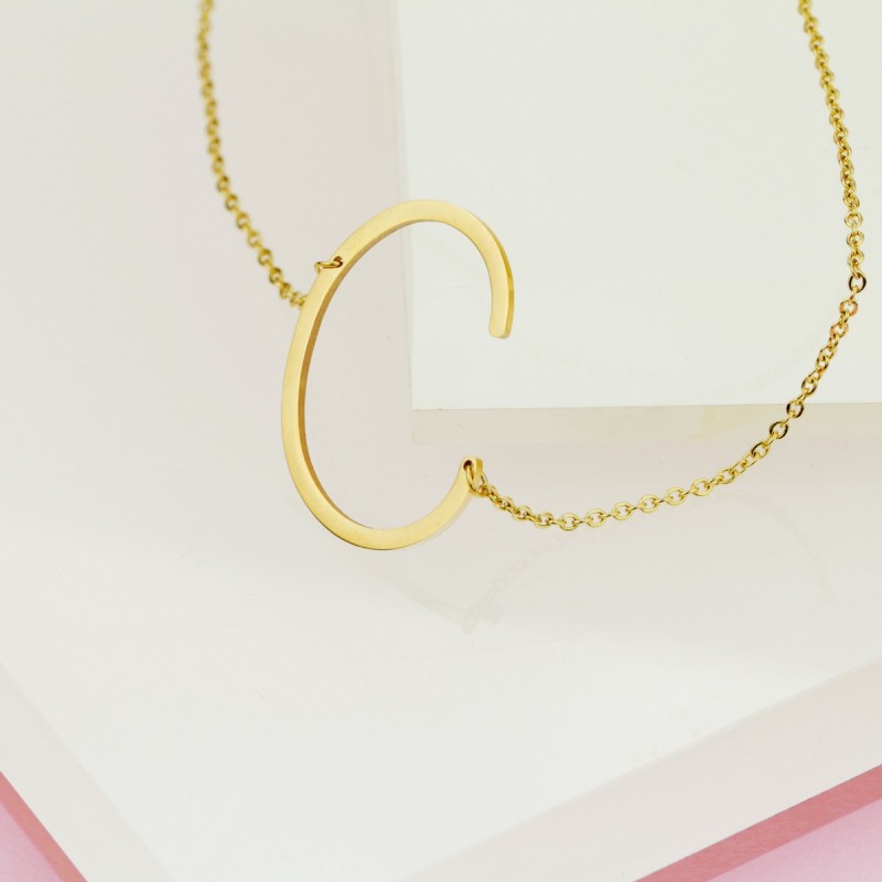 Naszyjnik stal chirurgiczna literka C platerowana złotem NST995C