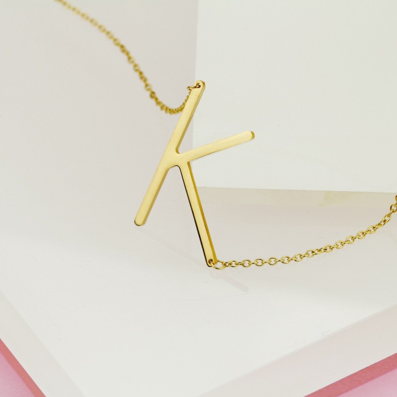 Naszyjnik stal chirurgiczna literka K platerowana złotem NST995K