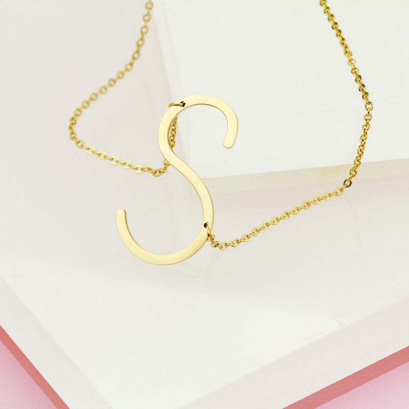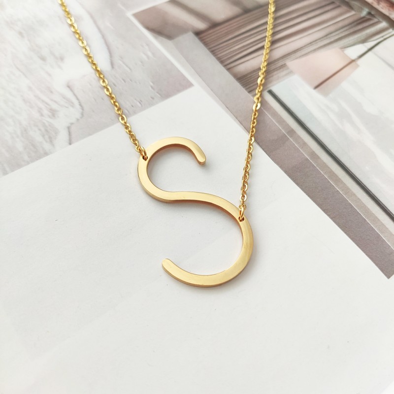 Naszyjnik stal chirurgiczna literka S platerowana złotem NST995S
