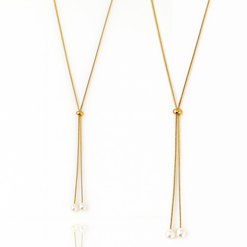 Naszyjnik stal szlachetna pozłacana 14k złotem, długi, regulowany perły NST2209