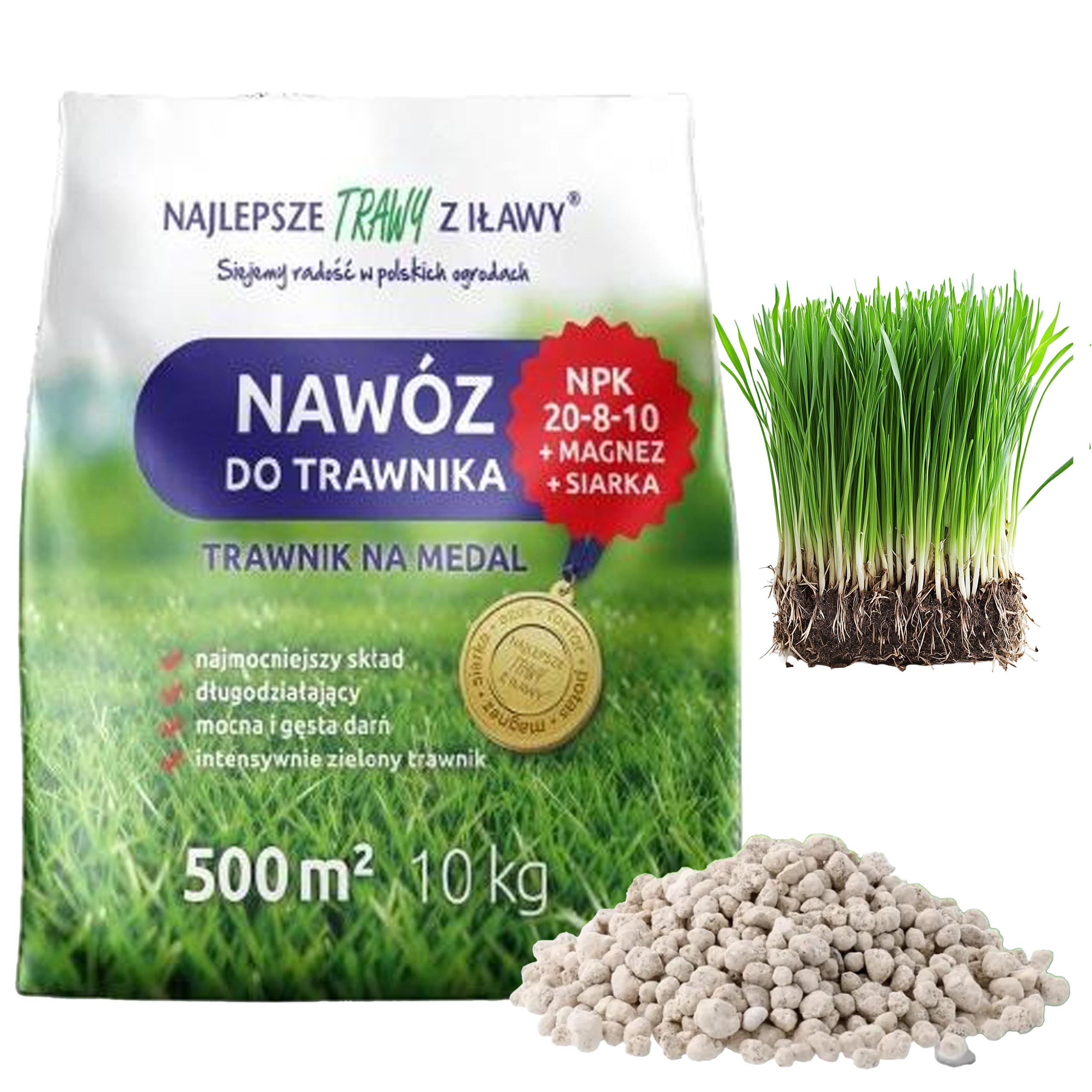 Nawóz do Trawnika Trawy Wieloskładnikowy NPK 20-8-10 Granulat 10 kg 500 m