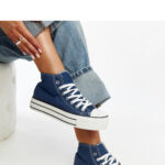 Niebieskie wysokie materiałowe trampki Raissa – Solea