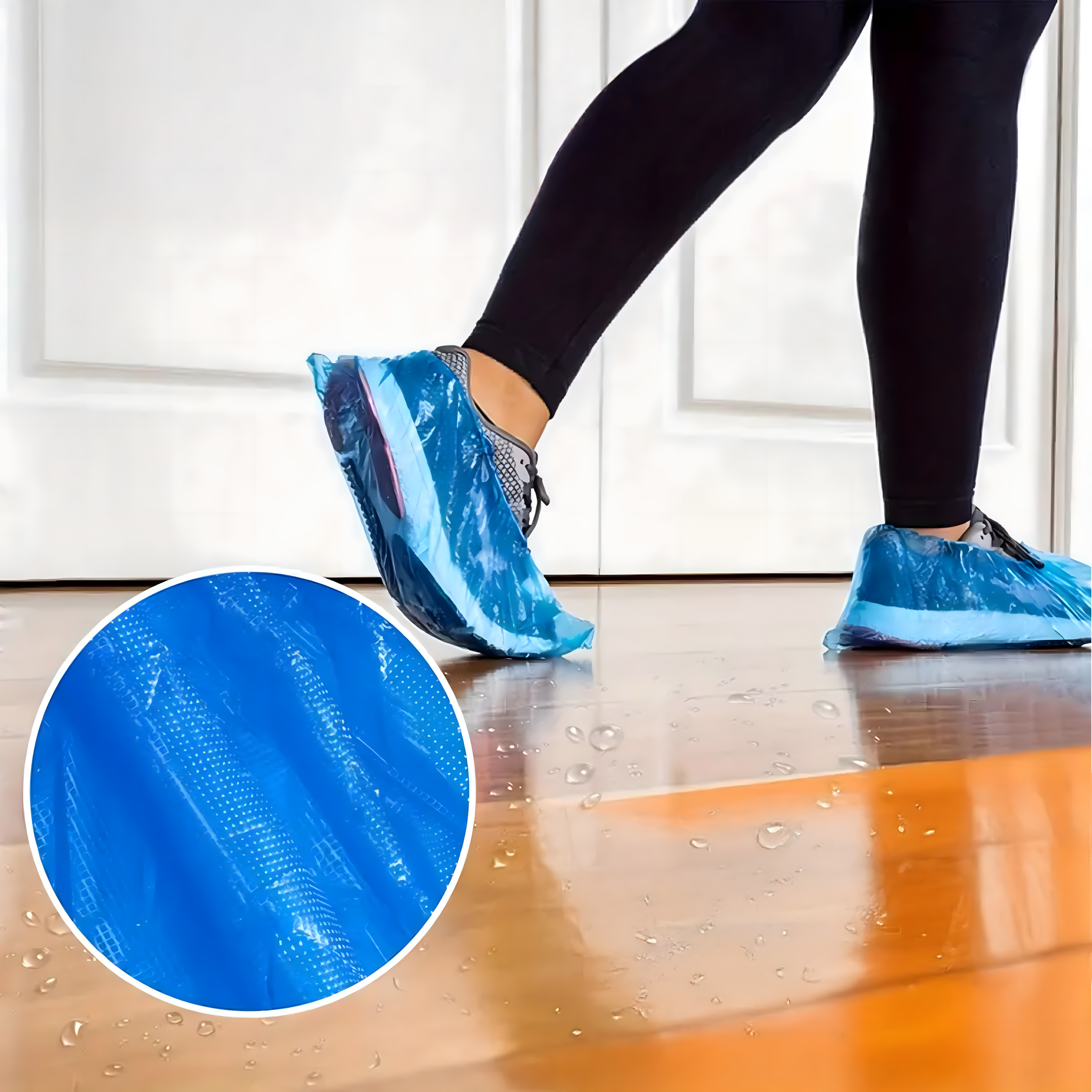 Foliowe ochraniacze na buty (20 szt. / 10 par) – wykonane z wytrzymałej, wodoodpornej folii LDPE. Uniwersalny rozmiar, elastyczny ściągacz i lekka konstrukcja sprawiają, że idealnie sprawdzą się w domu, medycynie, gastronomii czy budownictwie.