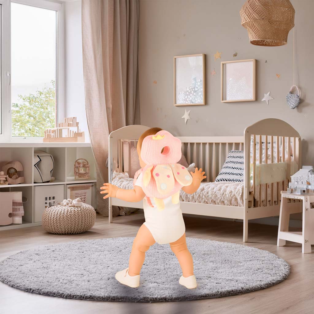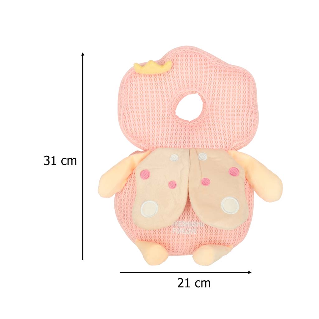 Poduszka wróżka ze skrzydełkami i koroną z miękkim zagłówkiem. Dla dzieci od 12 mies. życia – zapewni bezpieczeństwo podczas nauki chodzenia. Chroni tył głowy i plecy dziecka przed podłogą i meblami. Wymiary: 31 cm x 21 cm x 8 cm, kolor: różowy, beż