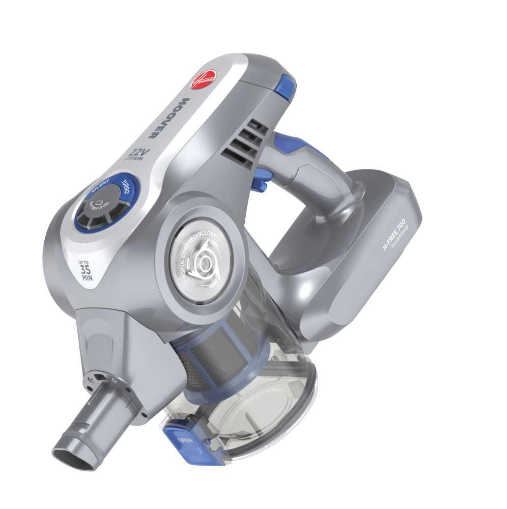 Dzięki innowacyjnej technologii HSpin-Core, systemowi oddzielającemu, który rozróżnia większe i mniejsze cząsteczki brudu, Hoover poprawiło osiągi bezprzewodowego odkurzacza H-FREE 700, zmniejszając również czas potrzebny na konserwację filtrów. Strumień powietrza o dużej prędkości spycha kurz, resztki i włosy na dno pojemnika, który możesz łatwo opróżnić, unikając kontaktu z kurzem.