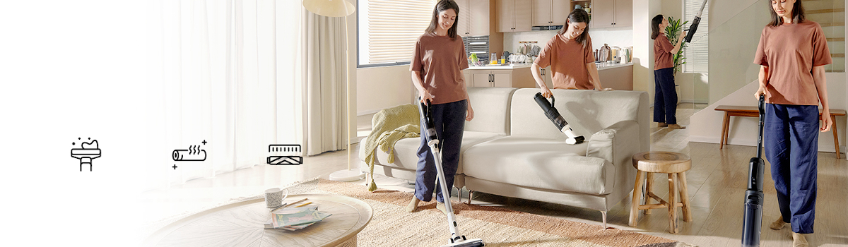 SWITCH S6 wyróżnia się przemyślaną konstrukcją, która umożliwia wygodne przechowywanie urządzenia i wszystkich akcesoriów na powierzchni mniejszej niż 1 metr kwadratowy. To oszczędzające miejsce rozwiązanie maksymalizuje efektywność przechowywania, pozwalając na łatwe i uporządkowane utrzymanie porządku w domu. Niezależnie od tego, jak mało miejsca masz do dyspozycji, SWITCH S6 doskonale wpasuje się w każdą przestrzeń.