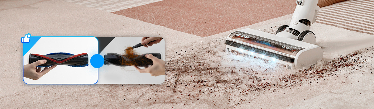 Specjalnie zaprojektowana szczotka ZeroTangle bez trudu radzi sobie z sierścią i włosami, eliminując problem plątania, co sprawia, że czyszczenie jest łatwiejsze niż kiedykolwiek wcześniej. Możesz pożegnać się z uciążliwym wyciąganiem zaplątanych włosów z odkurzacza.