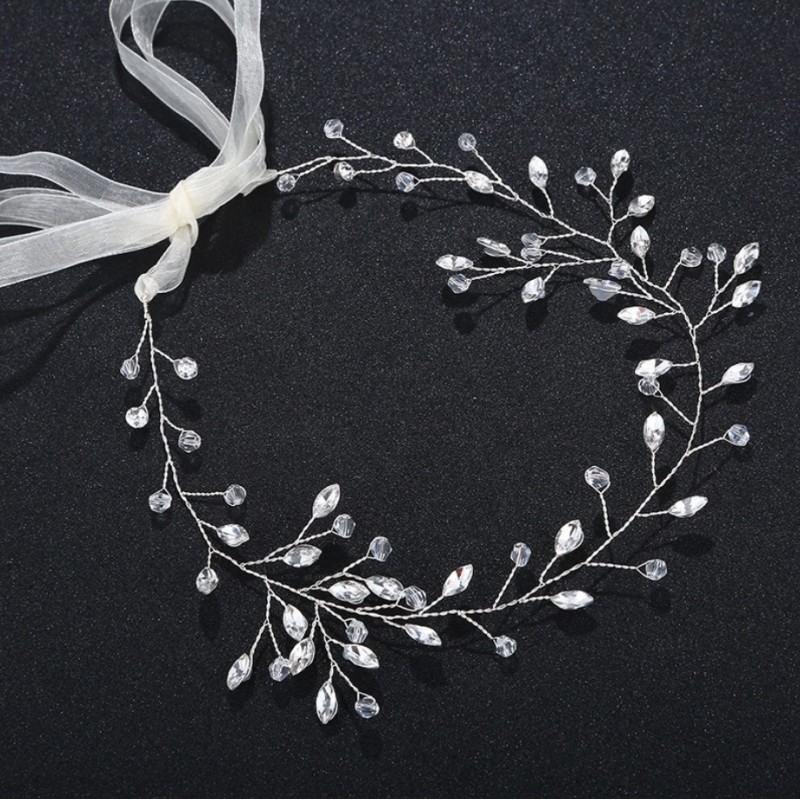 Delikatna opaska wykonana ręcznie z kompozycją kryształkowo – perłowąProsta, ale bardzo efektowna ozdoba do włosów.Rozmiar uniwersalny