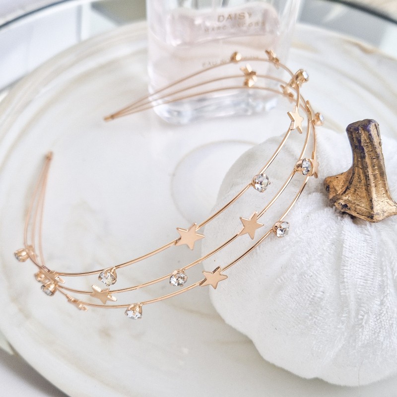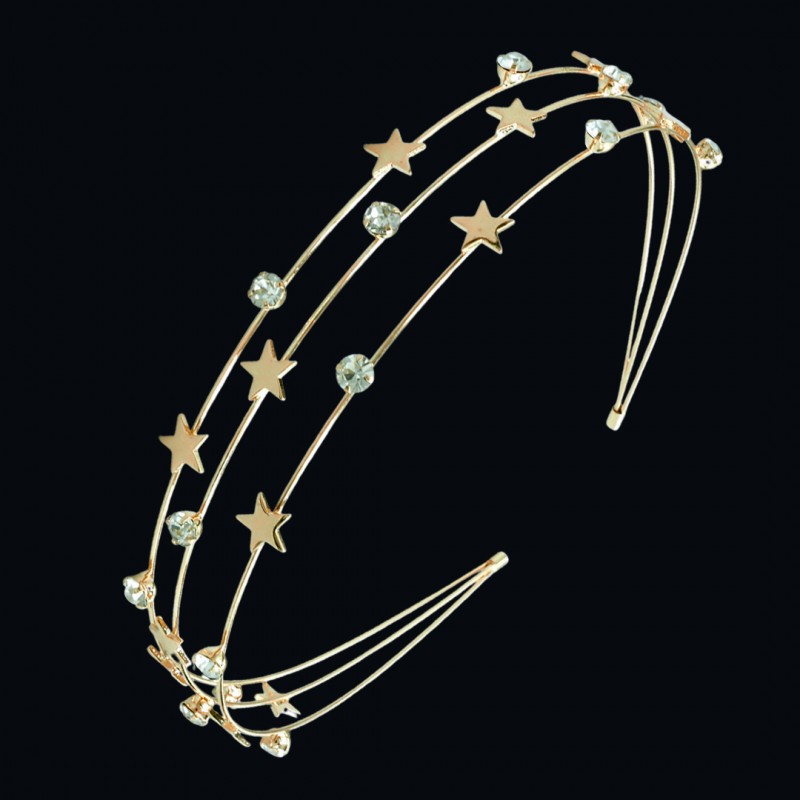 Opaska do włosów zdobiona multi gwiazdki złota O529