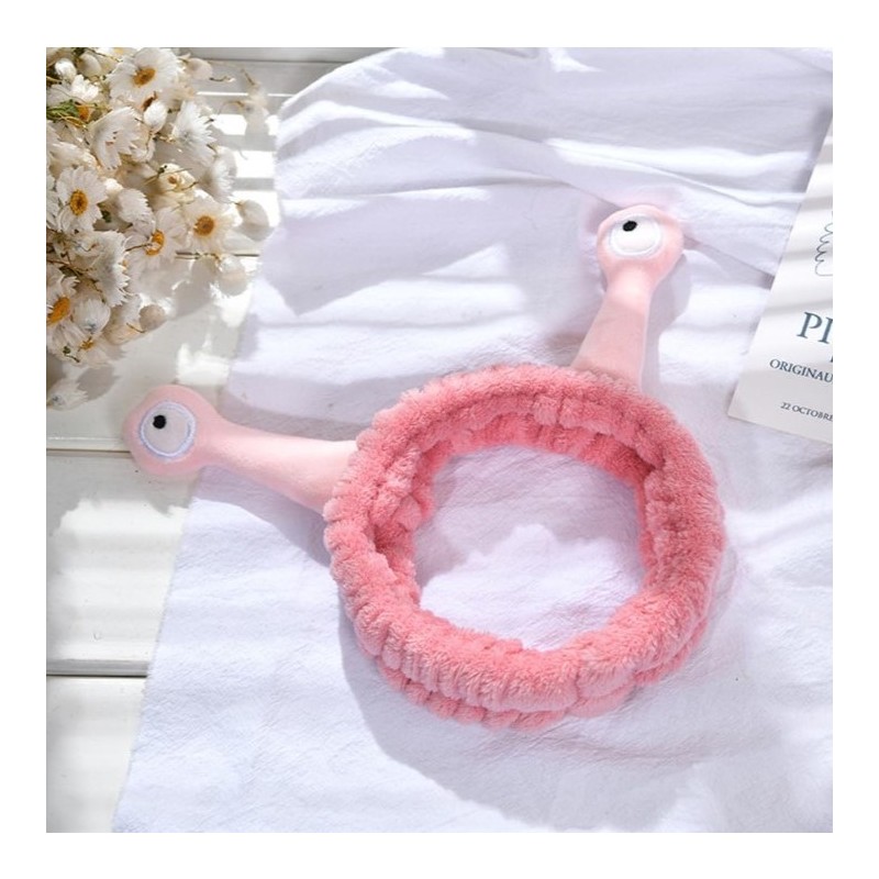 Opaska kosmetyczna do włosów ślimak, różowa pluszowa 20x5cm OPK22R