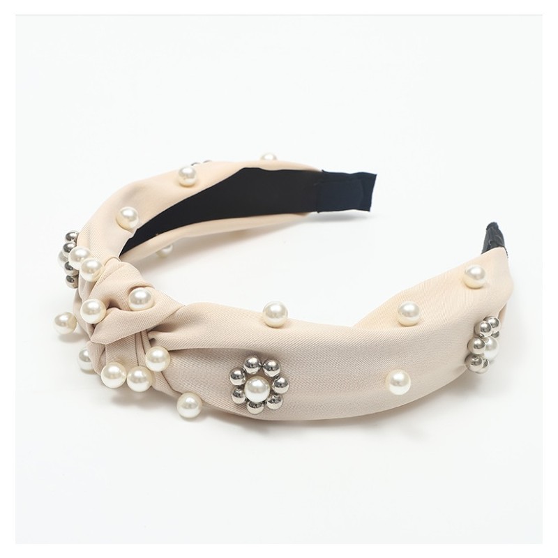 Opaska turban z materiału Perełki Krem O226K