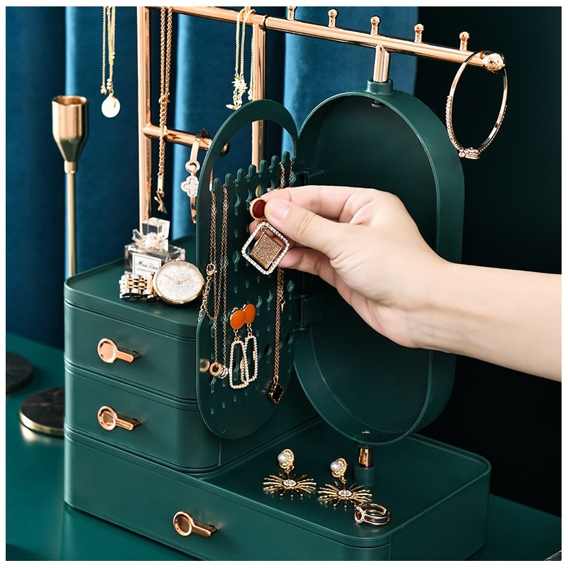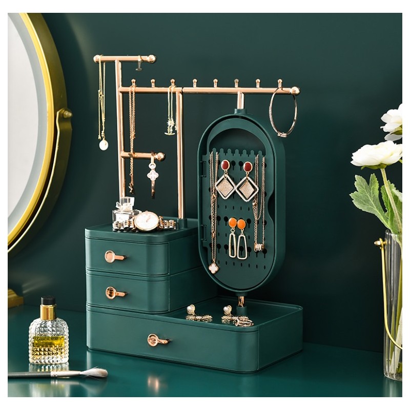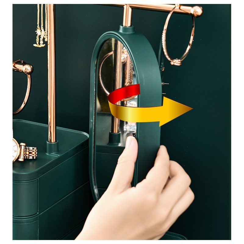 Organizer na biżuterię zielony szafeczka z lusterkiem i szufladkami PD60ZIE