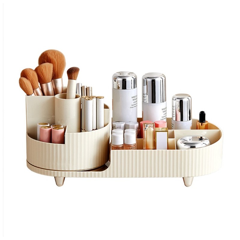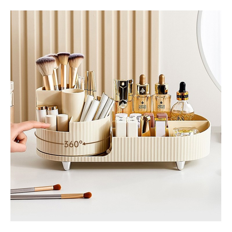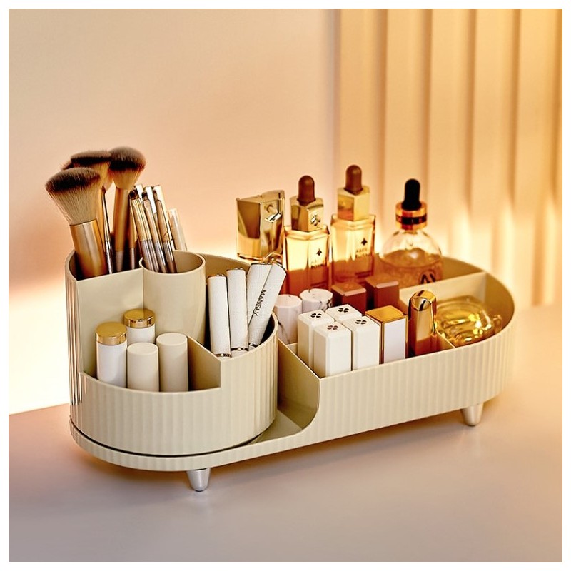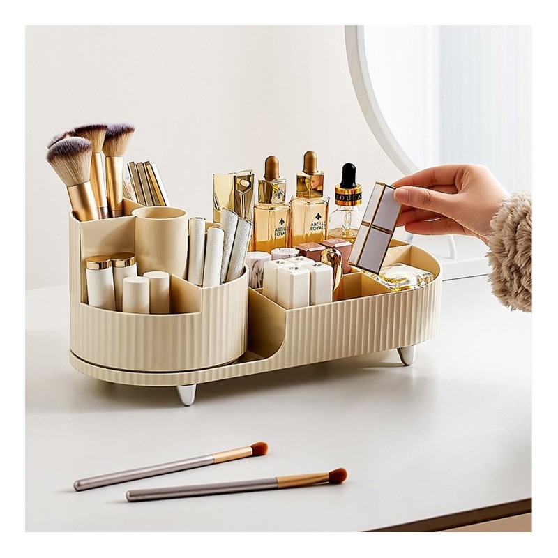 Elegancki ryflowany organizer na kosmetyki z obrotowym pojemnikiem na pędzle. Specyfikacja: Idealne pojemniki do łazienki, garderoby czy sypialni