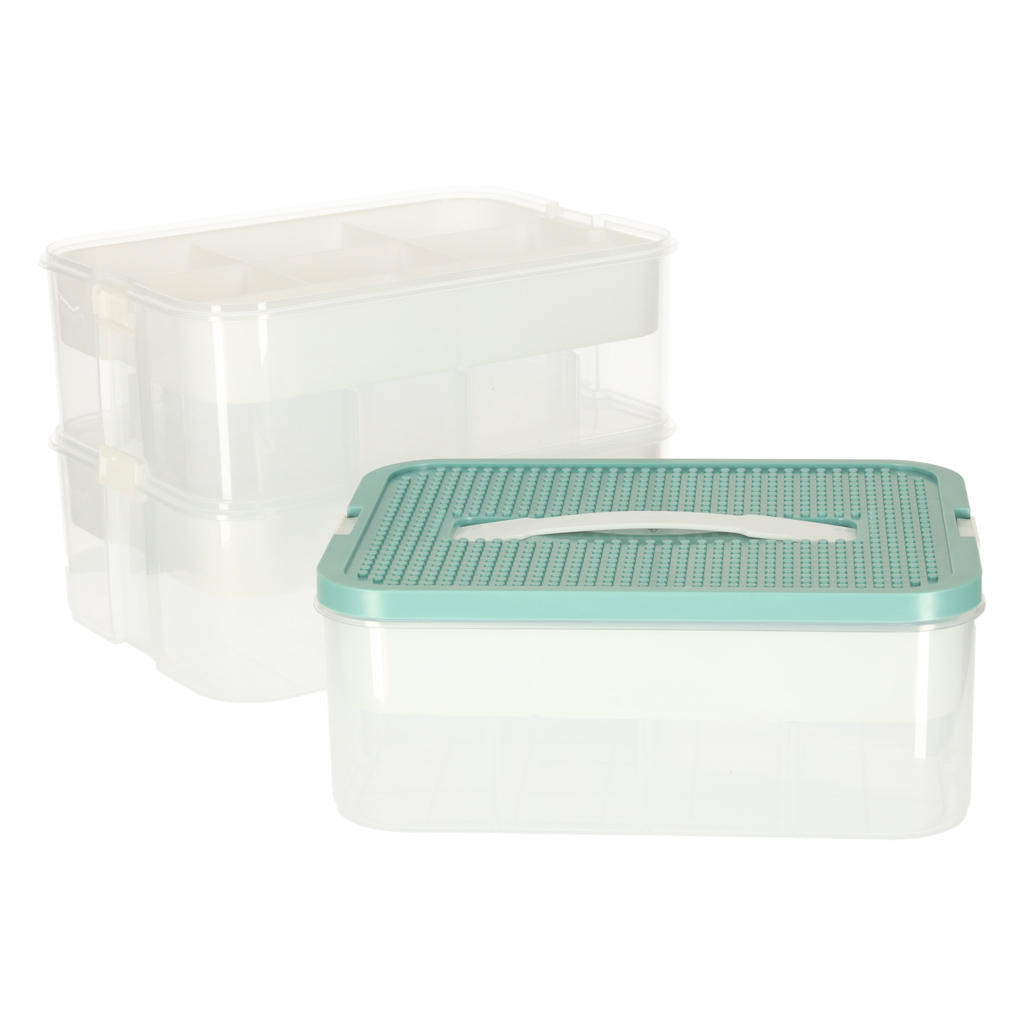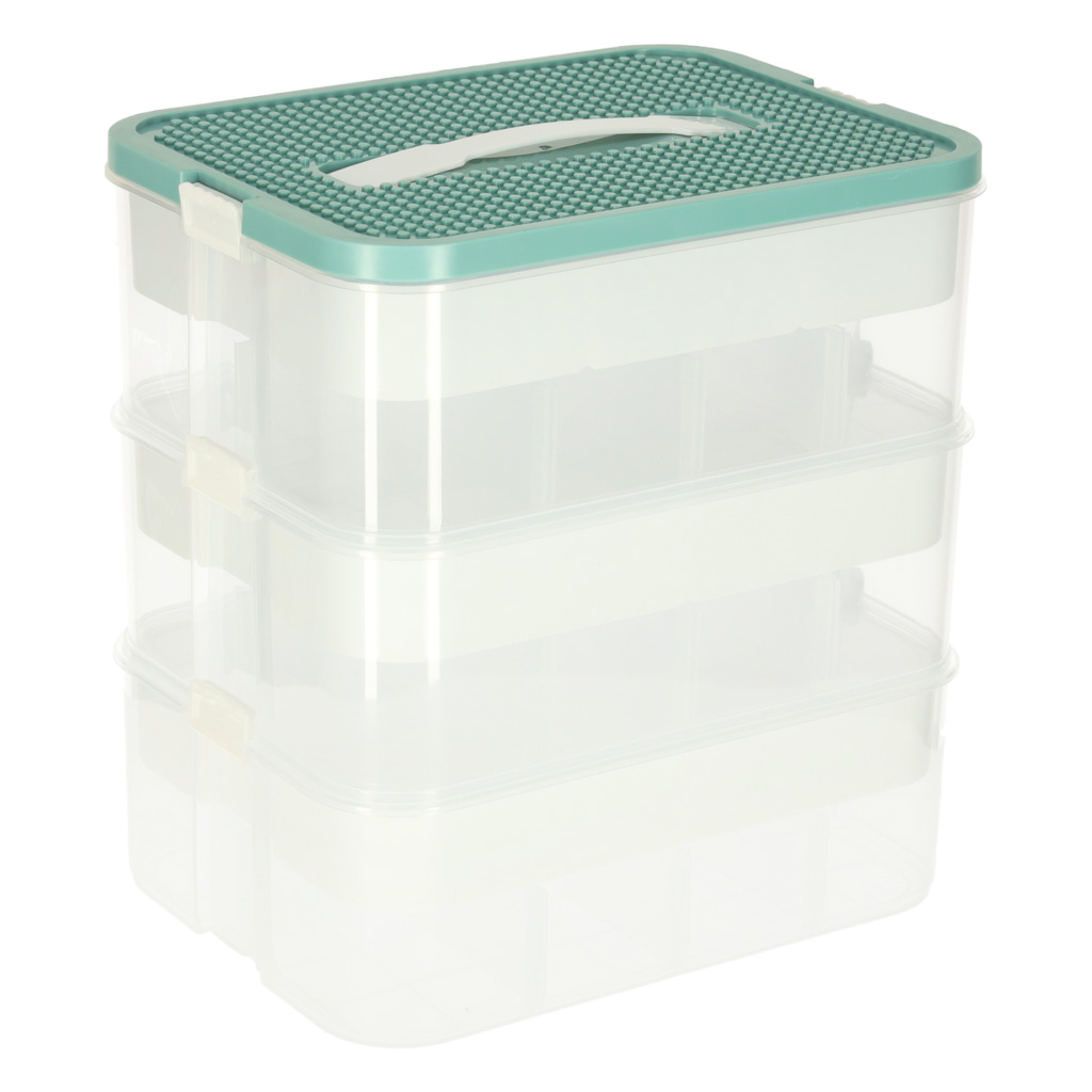 Organizer pudełko pojemnik na klocki zabawki drobiazgi z pokrywą przegródkami 3 piętra warstwy