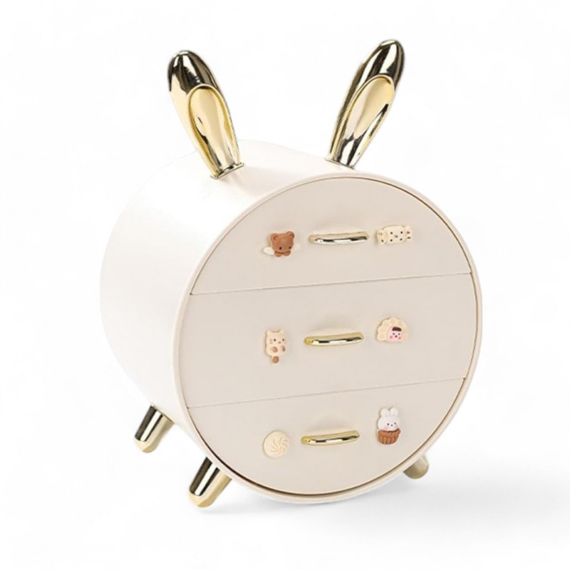 Organizer szkatułka na kosmetyki, biżuterię BUNNY ze złotymi uszkami CB60