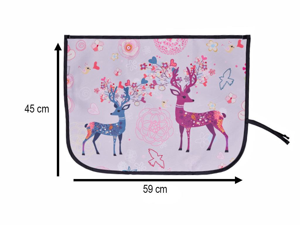 Świetna kurtyna magnetyczna do samochodu lub okna. Praktyczny dodatek do auta. Ochroni dziecko przed działaniem promieni UV i nagrzewaniem się samochodu. Wzór: jeleń. Materiał: poliester. Ilość magnesów: 5 magnesów. Wym. kurtyny: 59x45cm.