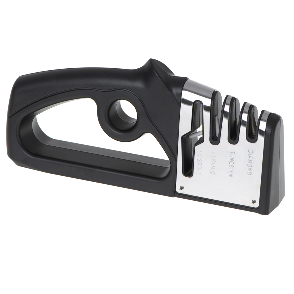 Ostrzałka do noży i nożyczek. Koniec z tępymi ostrzami – ostrzałka umożliwia szybkie i precyzyjne naostrzenie wszystkich noży kuchennych i nożyczek. Antypoślizgowa podstawa. Tworzywo: tworzywo sztuczne + metal + 3 materiały ostrzące. Wymiary: 22×9,5x4cm.