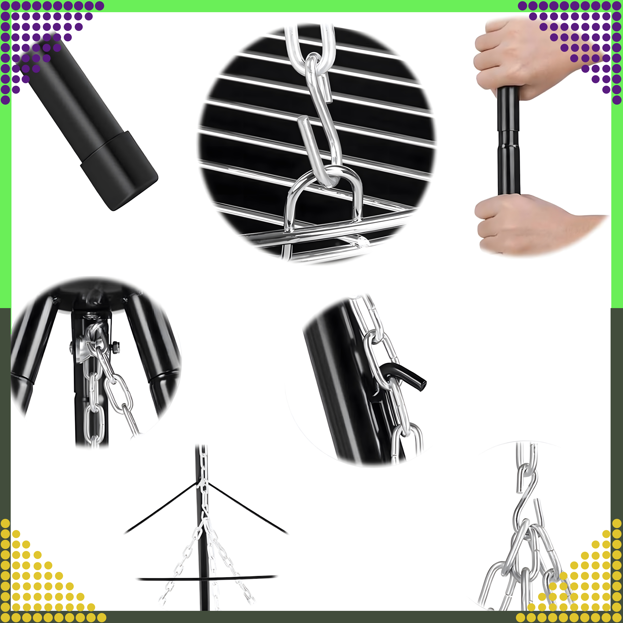 ⭐ Klasyczny grill na trójnogu z metalowym rusztem ⭐