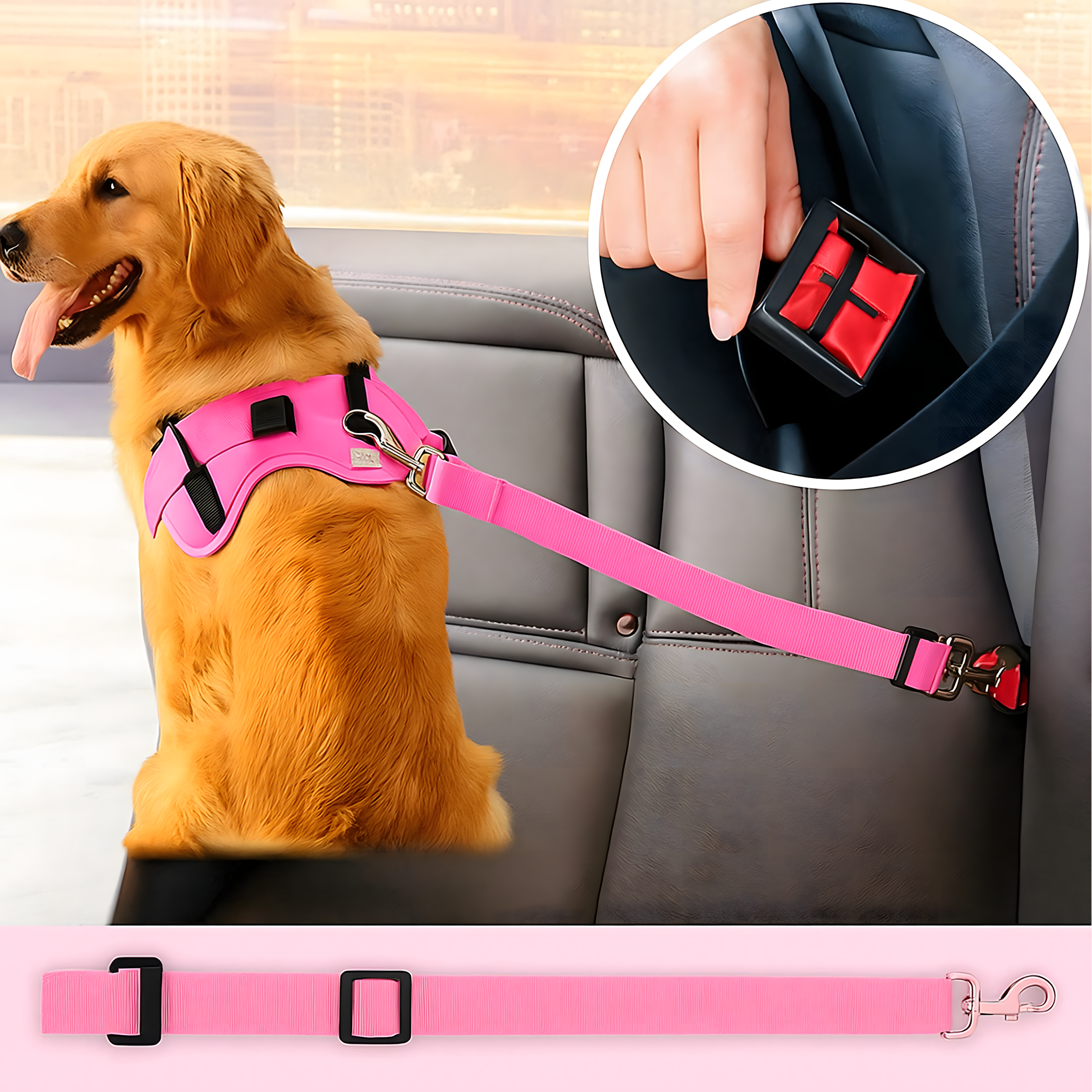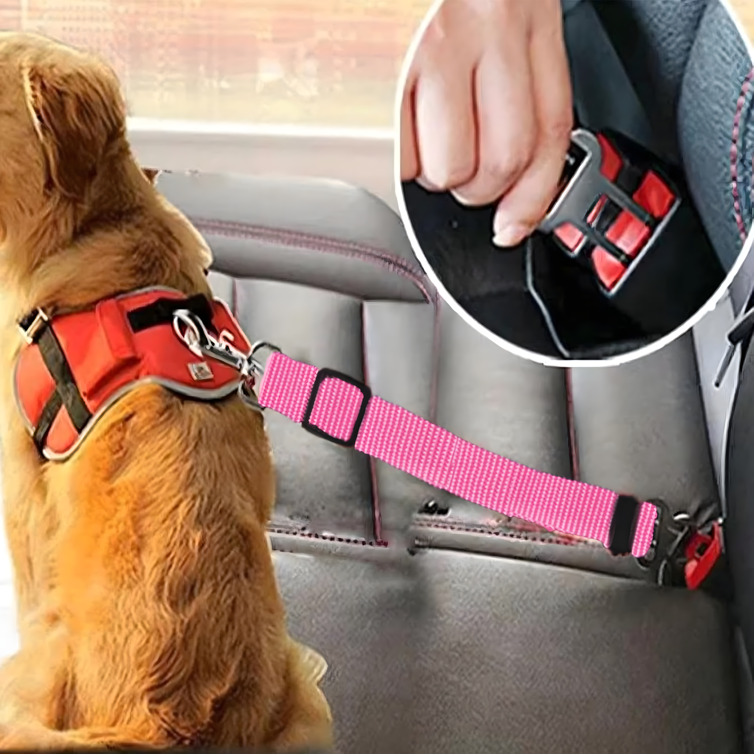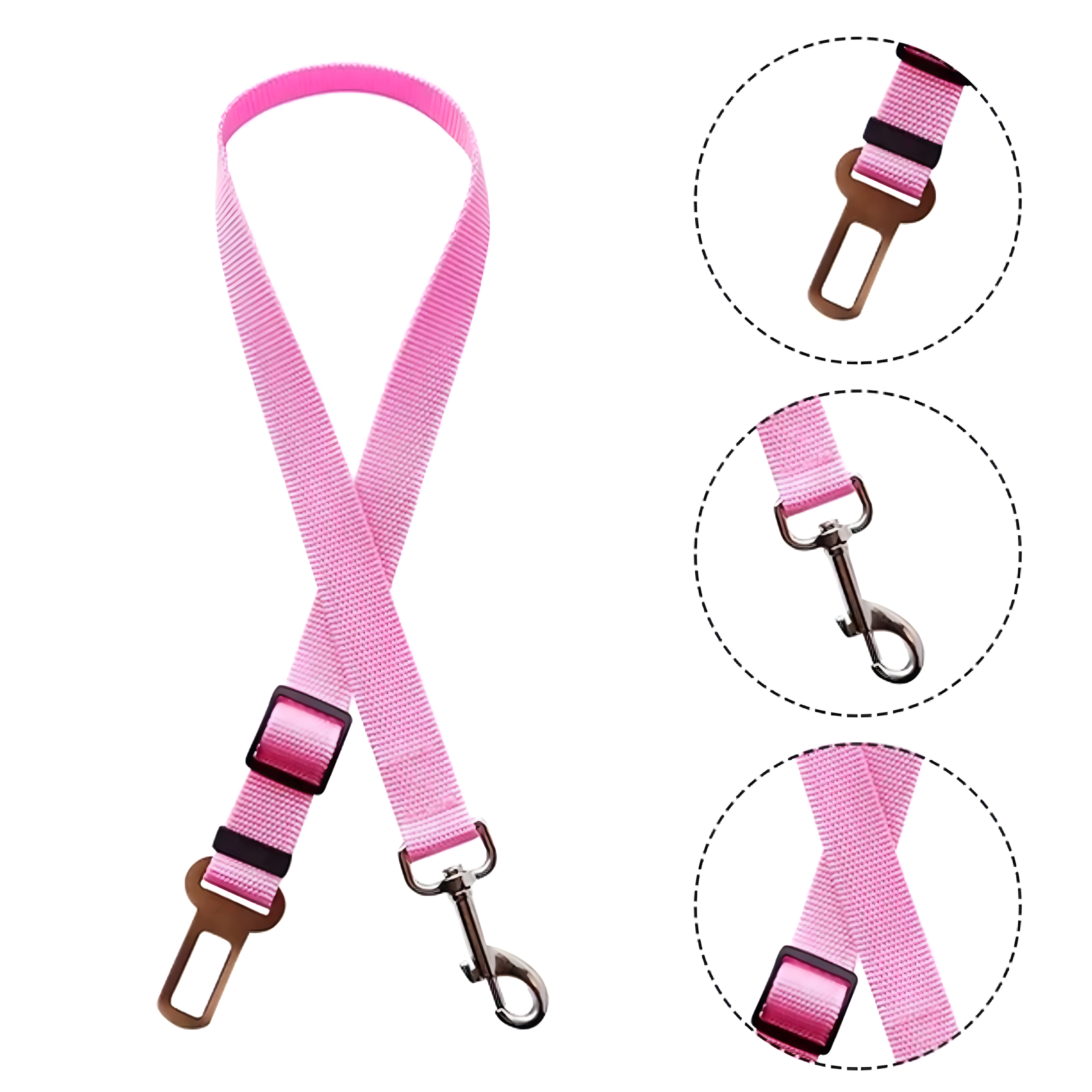 Pas bezpieczeństwa pozwala w bezpieczny sposób podróżować z psem na tylnym siedzeniu bez konieczności instalowania kratki działowej. Pas przypinany jest do szelek samochodowych lub obroży za pomocą karabińczyka.