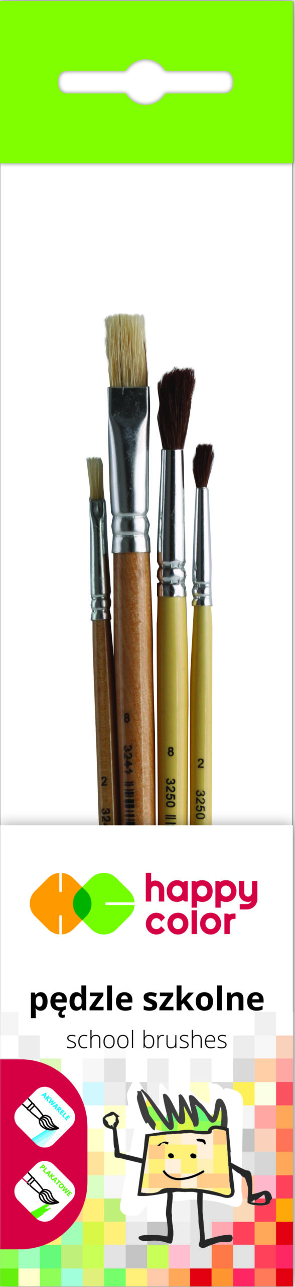 Pędzle Happy Color szkolne mix włosia B 4 sztuki