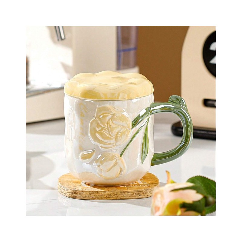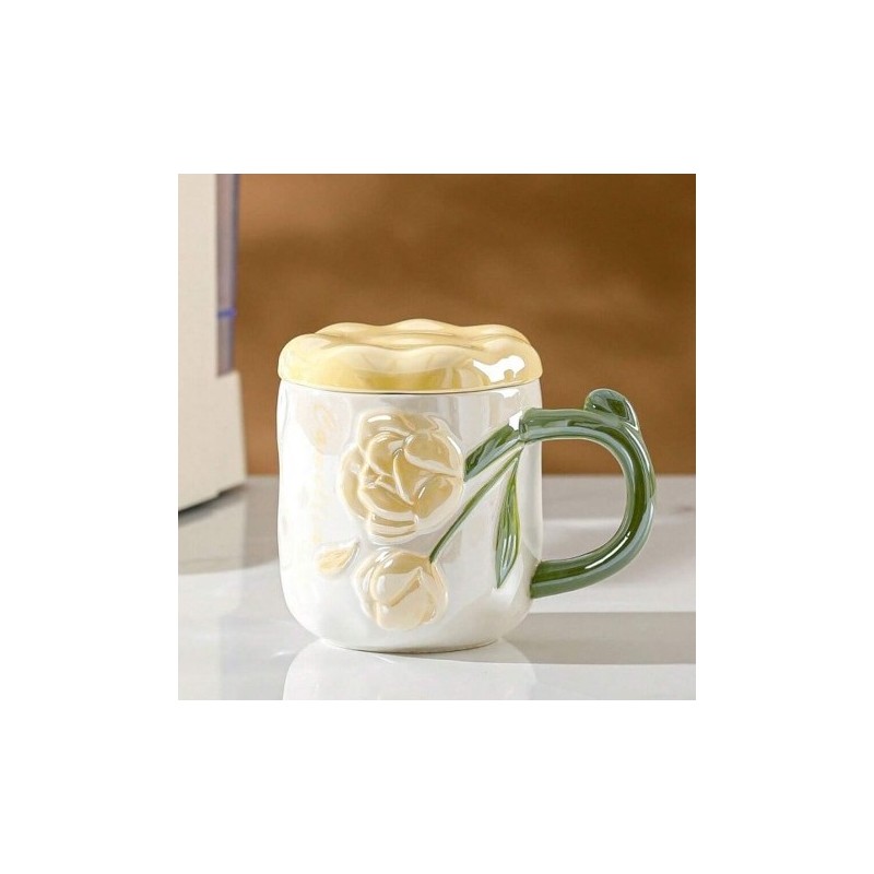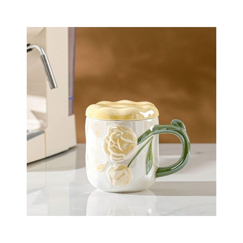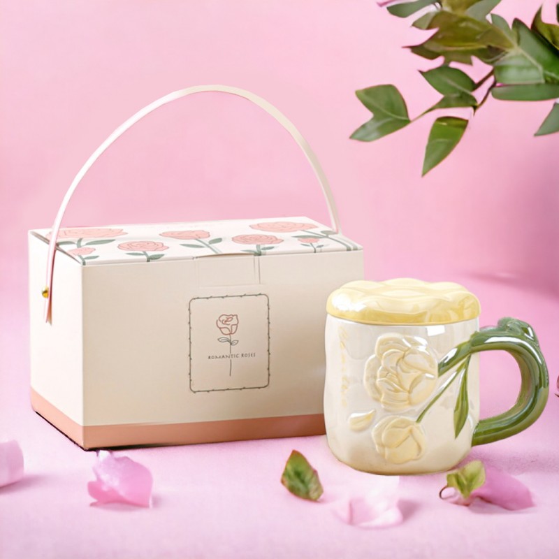 Perłowy Kubek z Pokrywką 450 ml Róże + Pudełko na Prezent KB02ZO