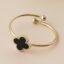 Pierścionek stal chirurgiczna platerowana złotem regulowany, czarna koniczynka PST951
