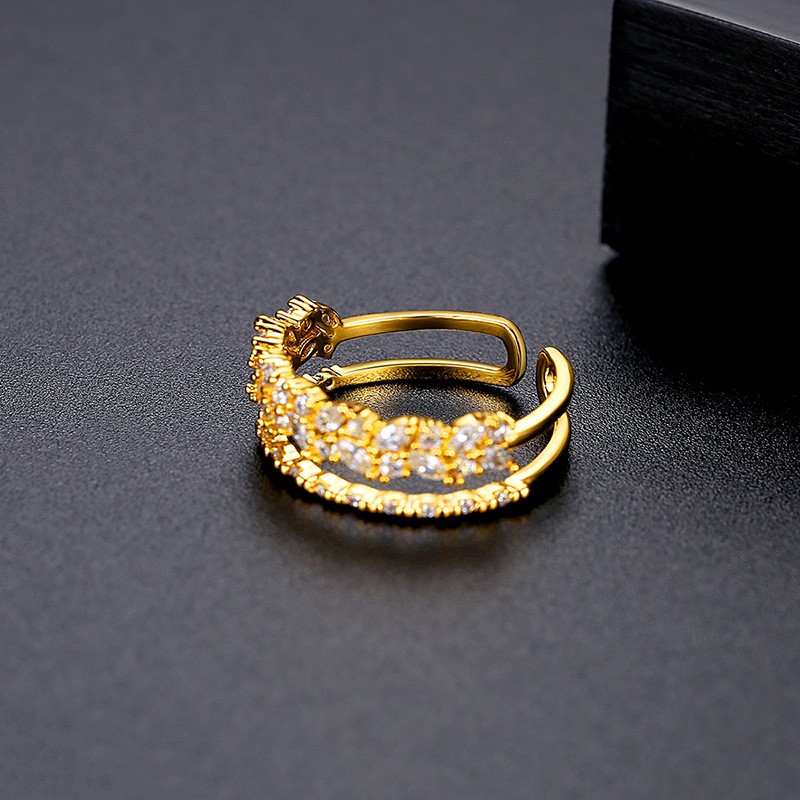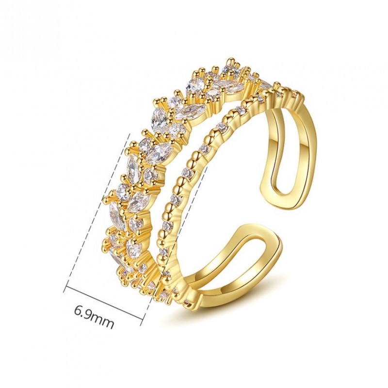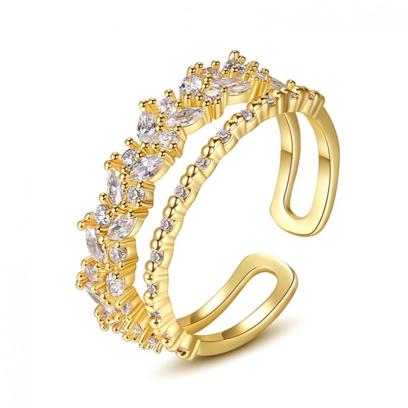 Pierścionek stal chirurgiczna platerowana złotem, regulowany z cyrkoniami PST932