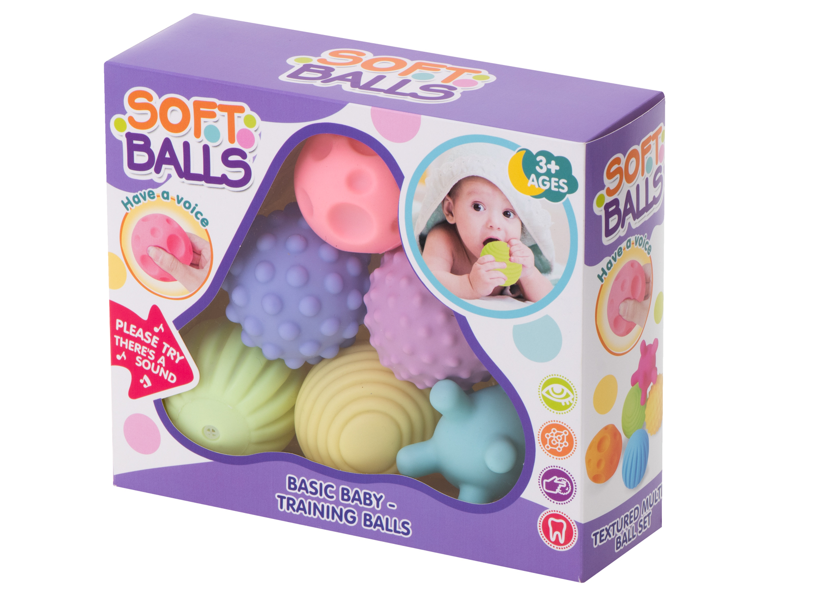 Zestaw kolorowych piłeczek sensorycznych o różnych strukturach z funkcją piszczałki. Idealne do zabawy lub masażu dziecka. Pobudzą zmysł słuchu, wzroku i dotyku. Wspomogą naukę nazw kształtów i kolorów. Tworzywo: guma. Obwód: 20cm.