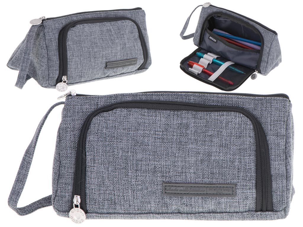Piórnik szkolny dwukomorowy saszetka kosmetyczka rozkładany 3w1 szary