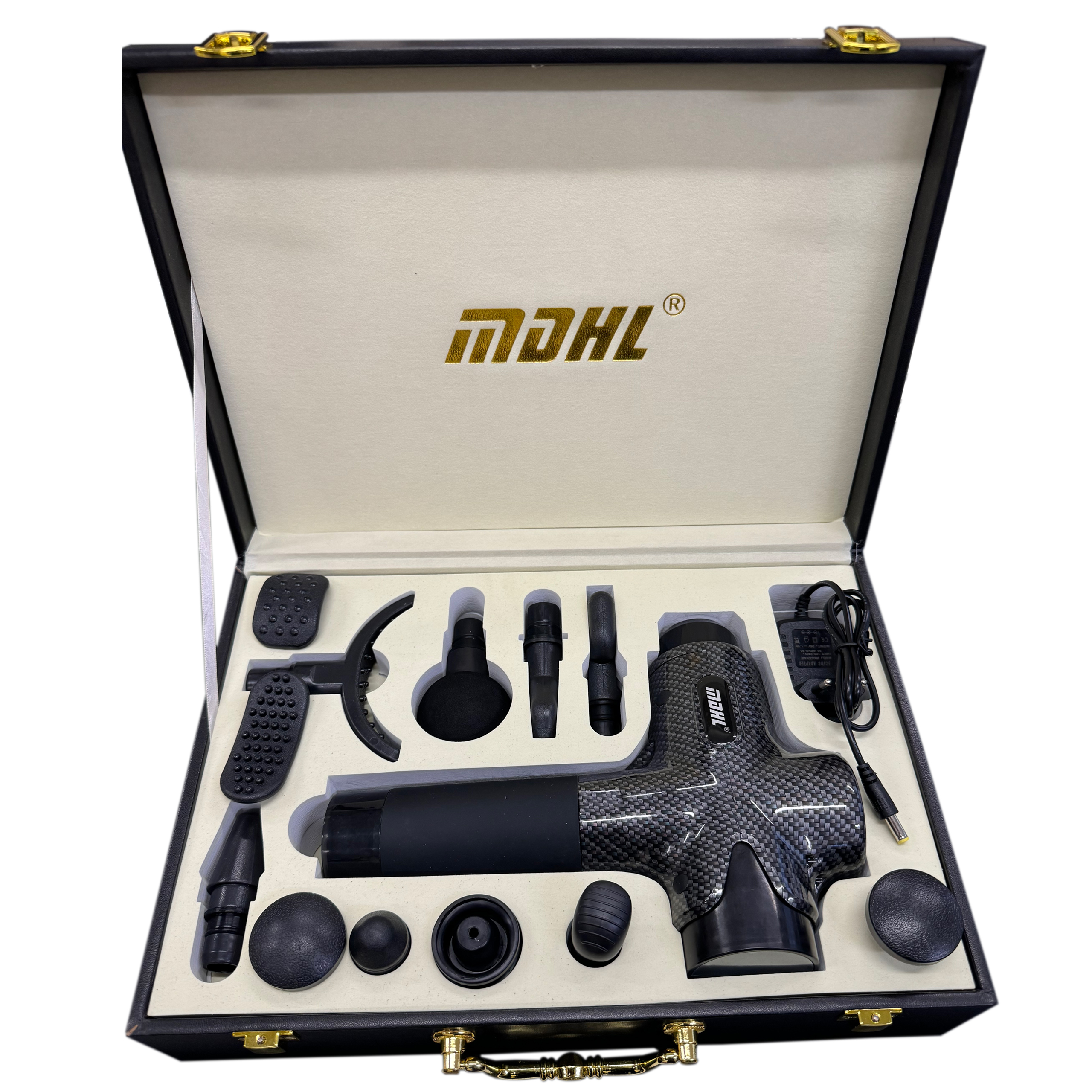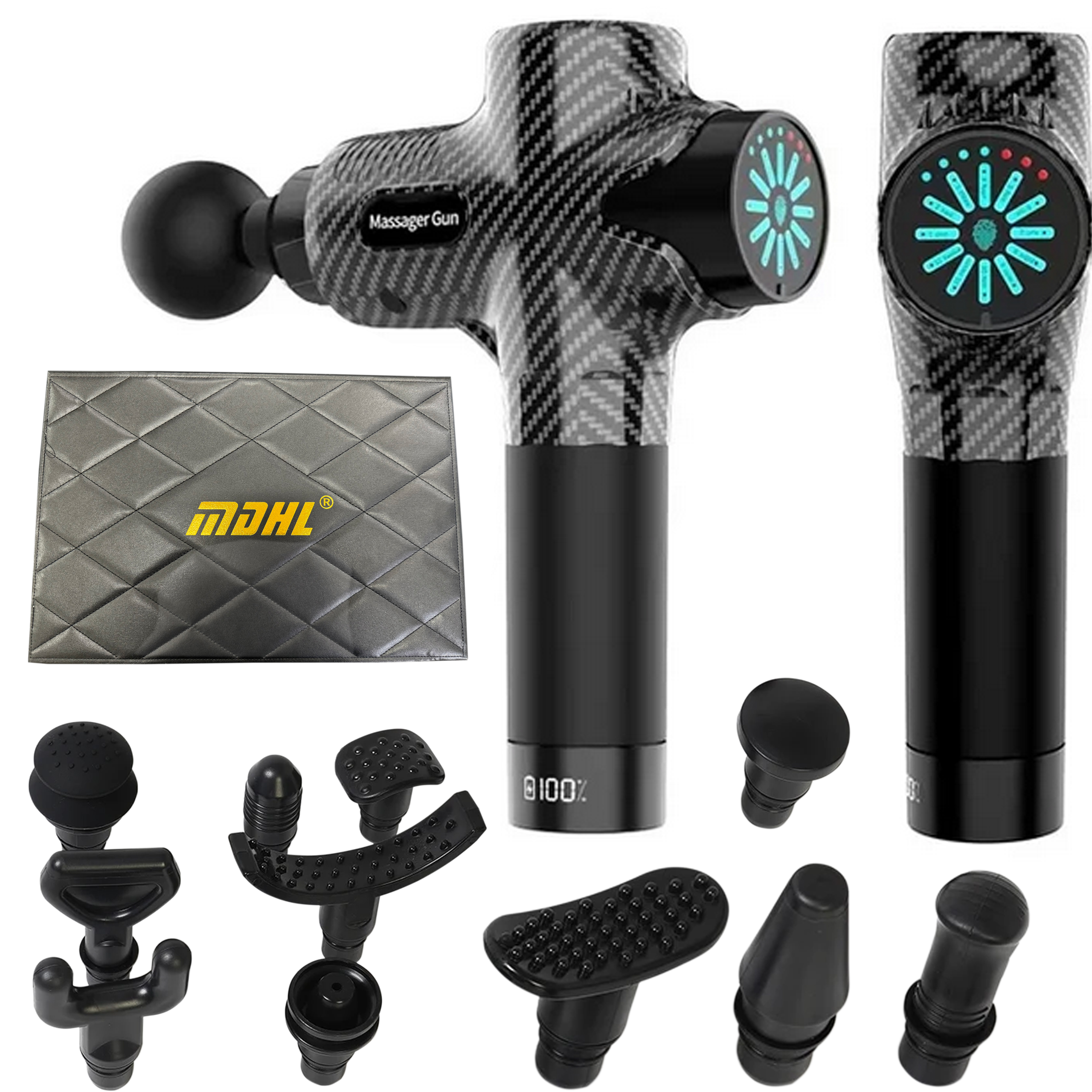 WYSOKIEJ KLASY MASAŻER PISTOLET DO CIAŁA MASSAGE GUN DOTYKOWY PANEL + 12 KOŃCÓWEK + ELEGANCKA WALIZKA
