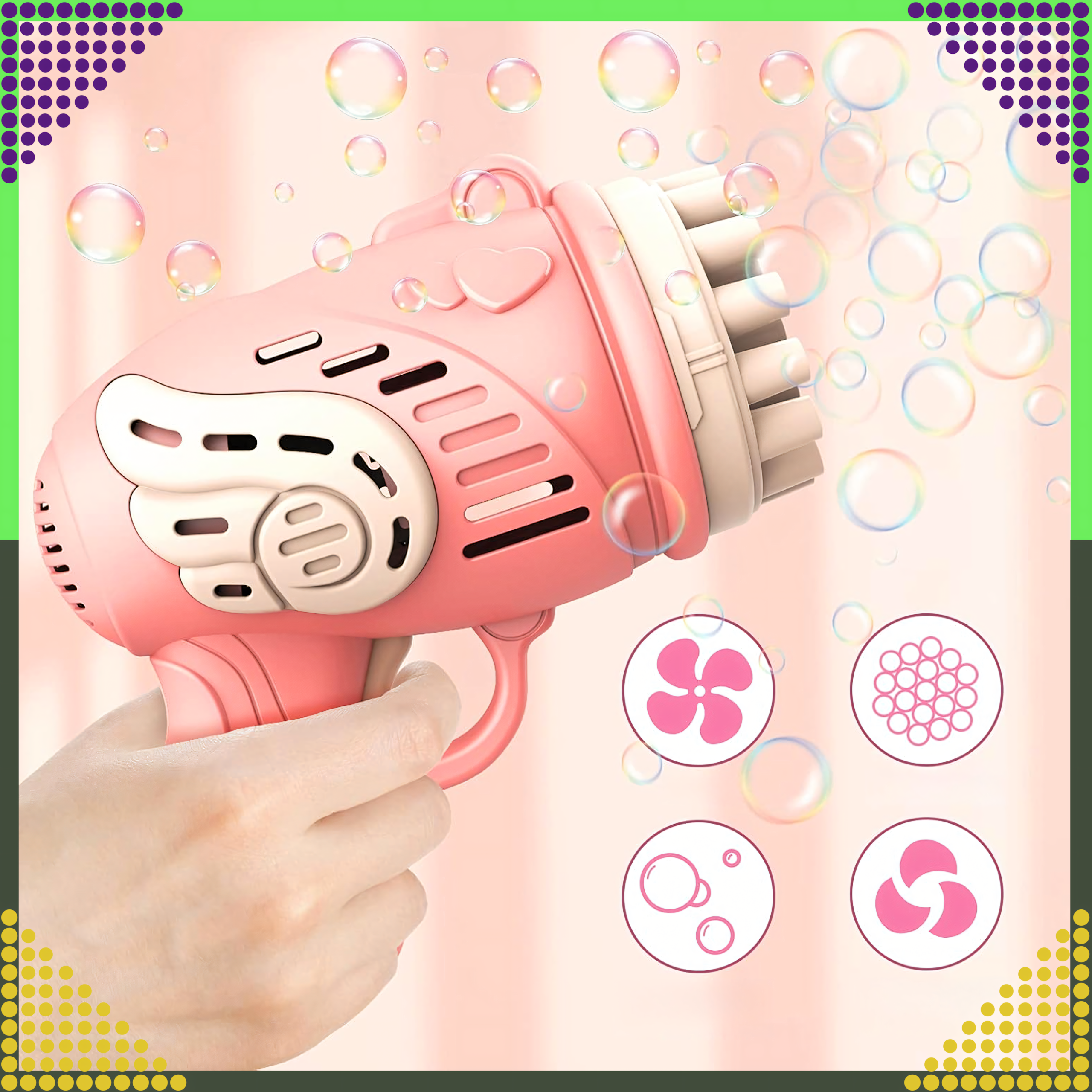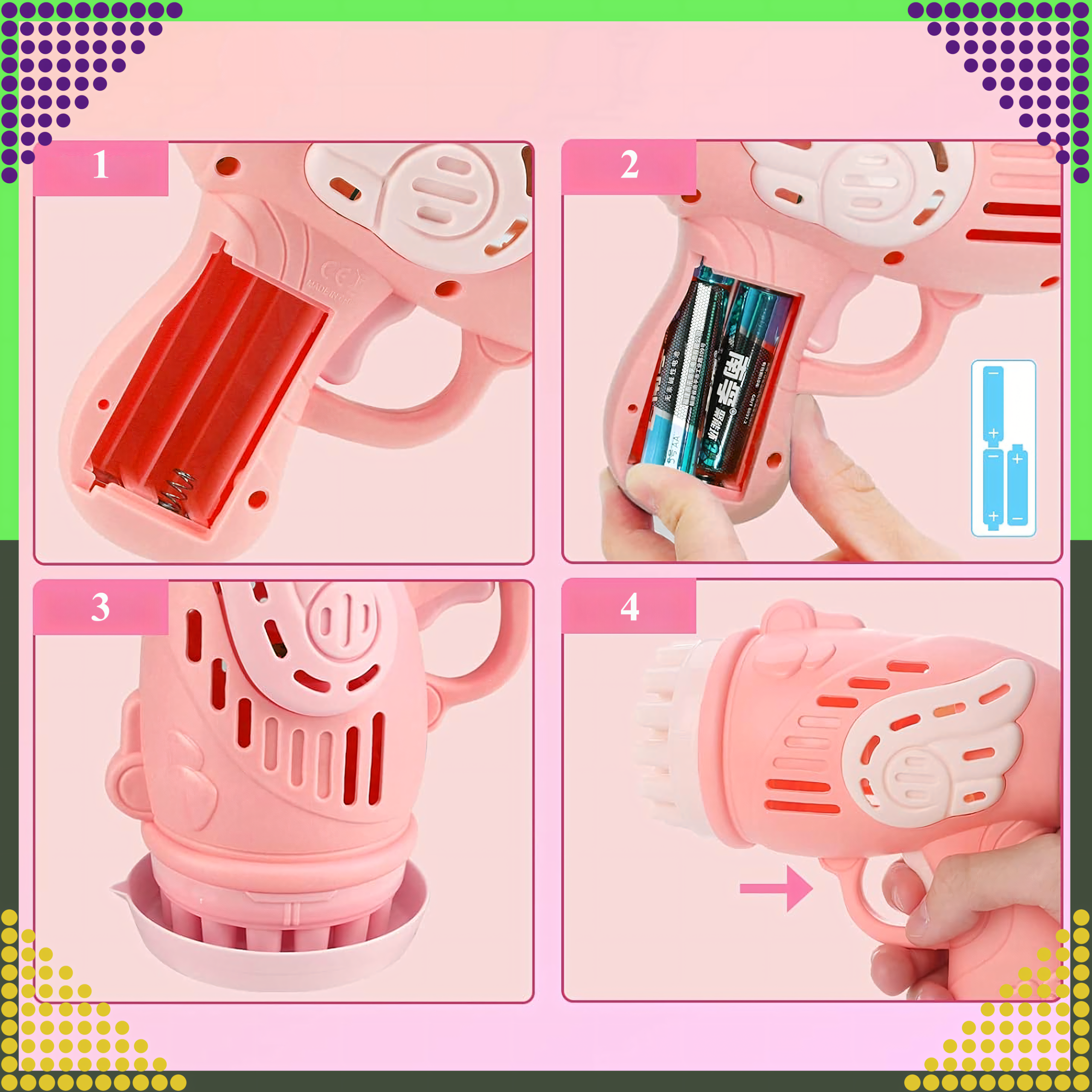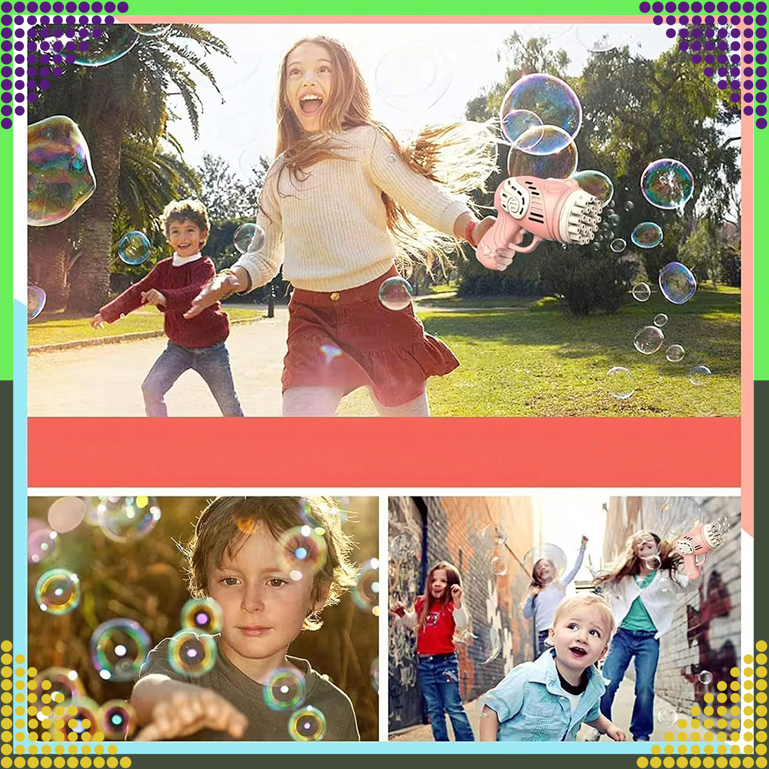 ✔️Gotowe do zabawy✔️Po prostu wkręć płyn i wciśnij spust – i już można podziwiać efektowne, kolorowe bańki unoszące się w powietrzu, zapewniając radość zarówno małym, jak i dużym użytkownikom.