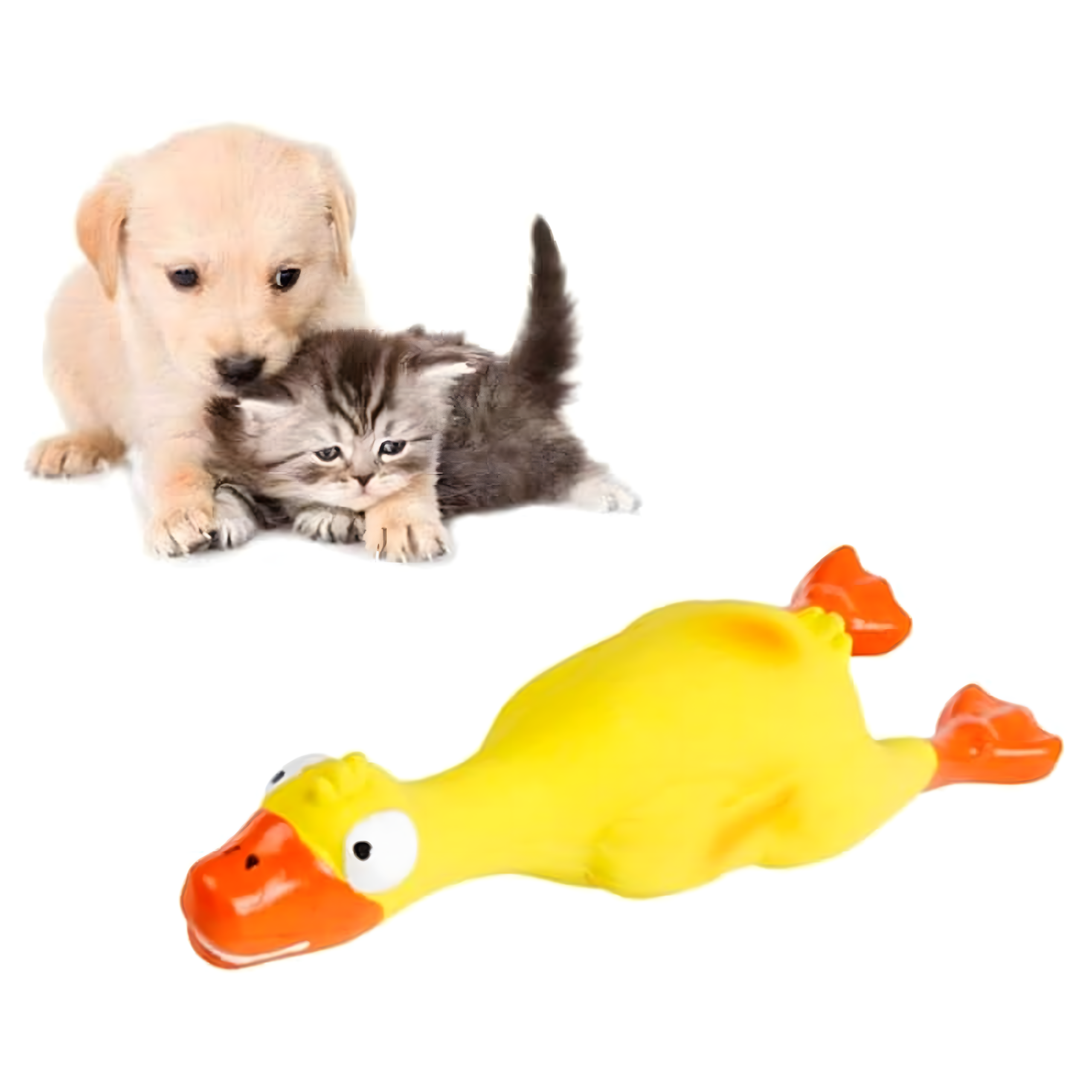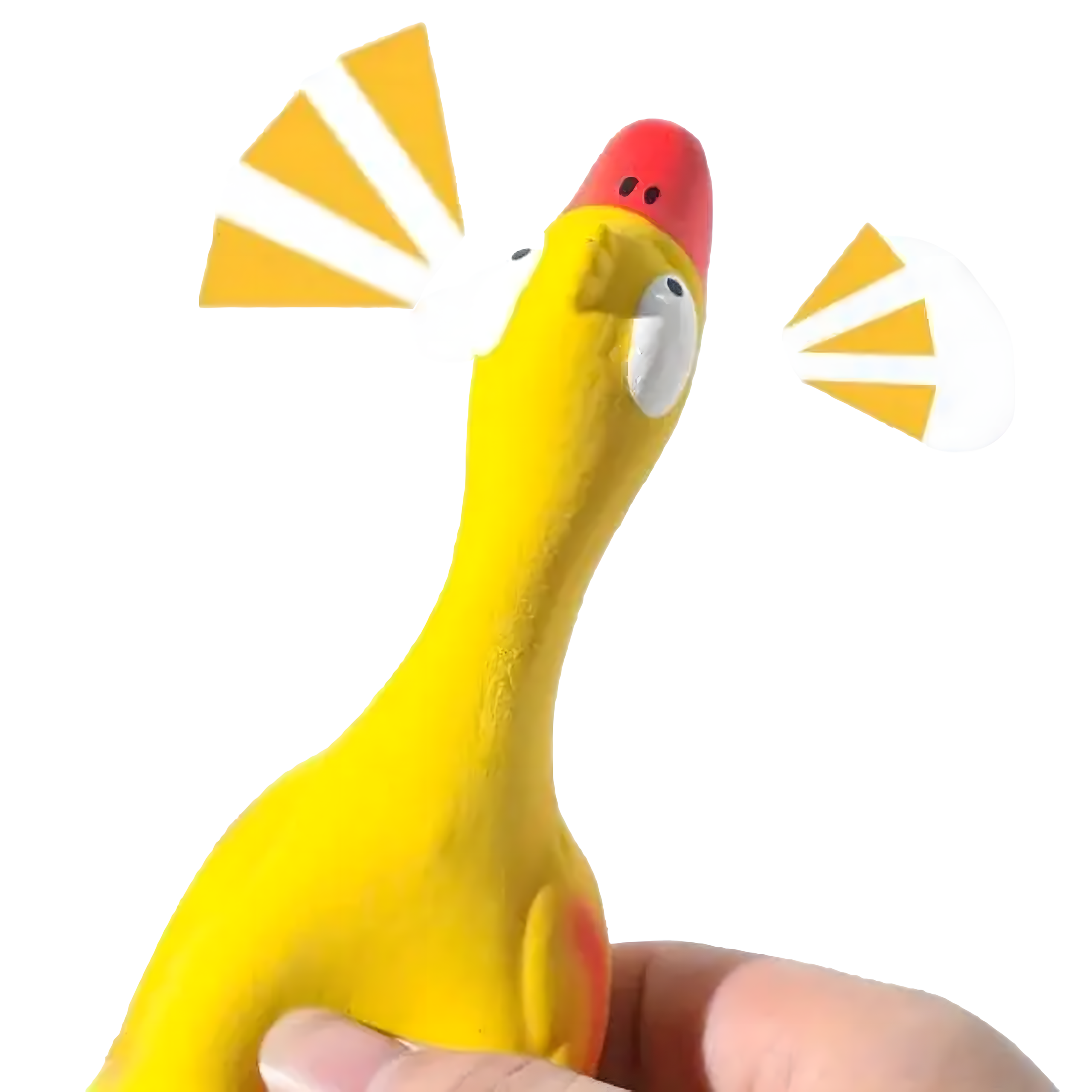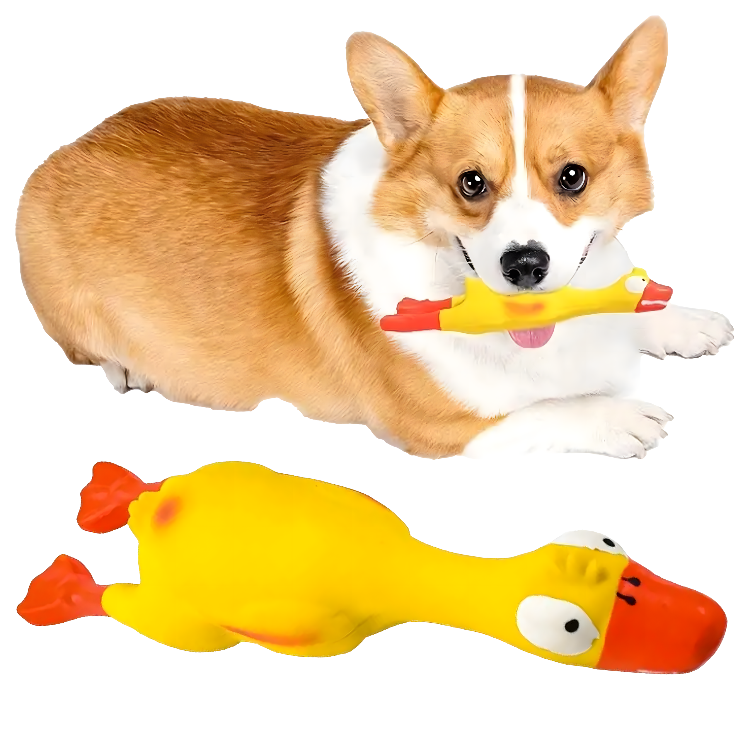 Piszcząca zabawka gumowy kurczak 22 cm – idealna dla psa do gryzienia, szarpania i aportowania.nWydaje zabawny dźwięk, zachęca do zabawy, rozładowuje energię i zapobiega nudzie. Bezpieczna, wytrzymała i odpowiednia także dla kotów!
