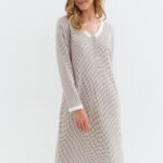 Damska piżama z długim rękawem to połączenie wygody i subtelnej elegancji. Wykonana z miękkiej i przewiewnej tkaniny z nadrukiem, idealnie sprawdza się zarówno na chłodniejsze noce, jak i do codziennego relaksu w domu. Bluzka z półokrągłym dekoltem i rękawami wykończonymi satynową lamówką nadaje zestawowi delikatny, kobiecy charakter. Do kompletu dołączone są spodnie z nogawkami obszytymi lamówką oraz elastyczną gumką w pasie, dodatkowo ozdobione uroczą kokardką. Piżama zapakowana jest w praktyczny foliowy woreczek, co czyni ją doskonałym pomysłem na prezent.