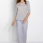 Zestaw 2-częściowy zaprojektowany i uszyty w Polsce z najwyższej jakości, delikatnej wiskozy. Piżama posiada certyfikat OEKO-TEX Standard 100, co potwierdza bezpieczeństwo materiałów nawet dla najbardziej wrażliwej skóry. Górna część z krótkim rękawem i dekoltem w kształcie litery V subtelnie podkreśla kobiecą sylwetkę. Spodnie o luźnym, wygodnym kroju ze szerszą, prostą nogawką gwarantują pełną swobodę ruchów, idealne zarówno do snu, jak i jako wygodny homewear na co dzień. Dzięki eleganckiemu, a zarazem swobodnemu stylowi, piżama świetnie sprawdzi się także jako prezent, dla bliskiej osoby lub samej siebie.