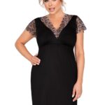 Damska piżama składająca się z bluzki z długim rękawem i dekoltem w kształcie litery V, wykończonym delikatną koronką. Wykonana z miękkiej, gładkiej i przewiewnej tkaniny, która zapewnia komfort snu. Długie spodnie z elastyczną gumą w pasie gwarantują idealne dopasowanie i swobodę ruchów. Całość pakowana w praktyczny woreczek foliowy.