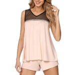 Amarantowa piżamka z wiskozy zdobiona koronką to doskonały sposób na każdą chandrę. Bez względu na to jak Ci minął dzień, po prostu wskocz w to cudo i się zrelaksuj. Od razu rozpieści Cię dotyk miękkiej tkaniny i śliczny kolor, a wstawki z koronki sprawią, że poczujesz się sexy. Ramiączka regulowane. Szorty na elastycznej gumce.